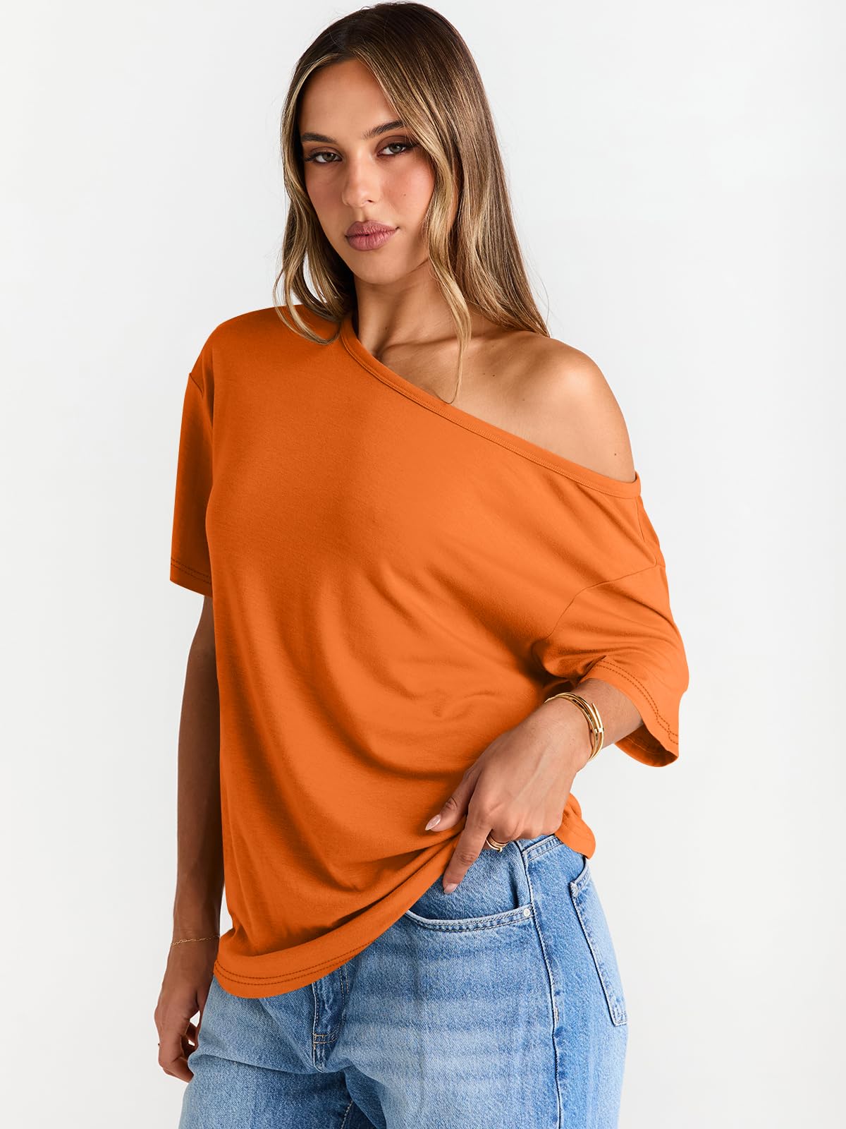 Design: The oversized tops for women feature an off the shoulder cut for femininity. This trendy fashion loose shirts for womens adds a good wearing experience, while the short sleeves ensure versatility