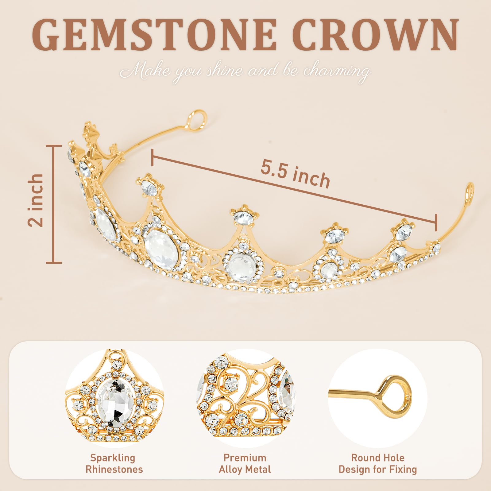 Elegant Design: The crown features a classic royal design embellished with sparkling rhinestones, instantly adding a touch of elegance and sophistication. Four inner holes allow hairpins to secure the crown in place. Comfortable, stable, and elegant—stay confident all day.