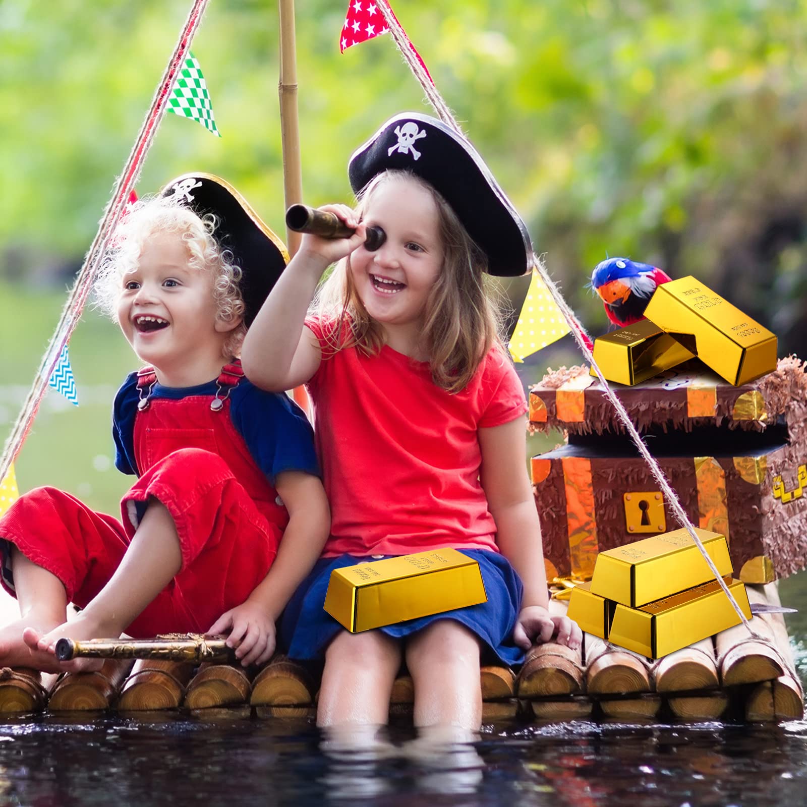 Thoughtful Round Corners: each gold bars prop measures approx. 2.4 x 1.1 x 0.6 inches, easy to hold and carry, the rounded corners allow adults, boys, and girls to use them safely, bringing you a nice experience