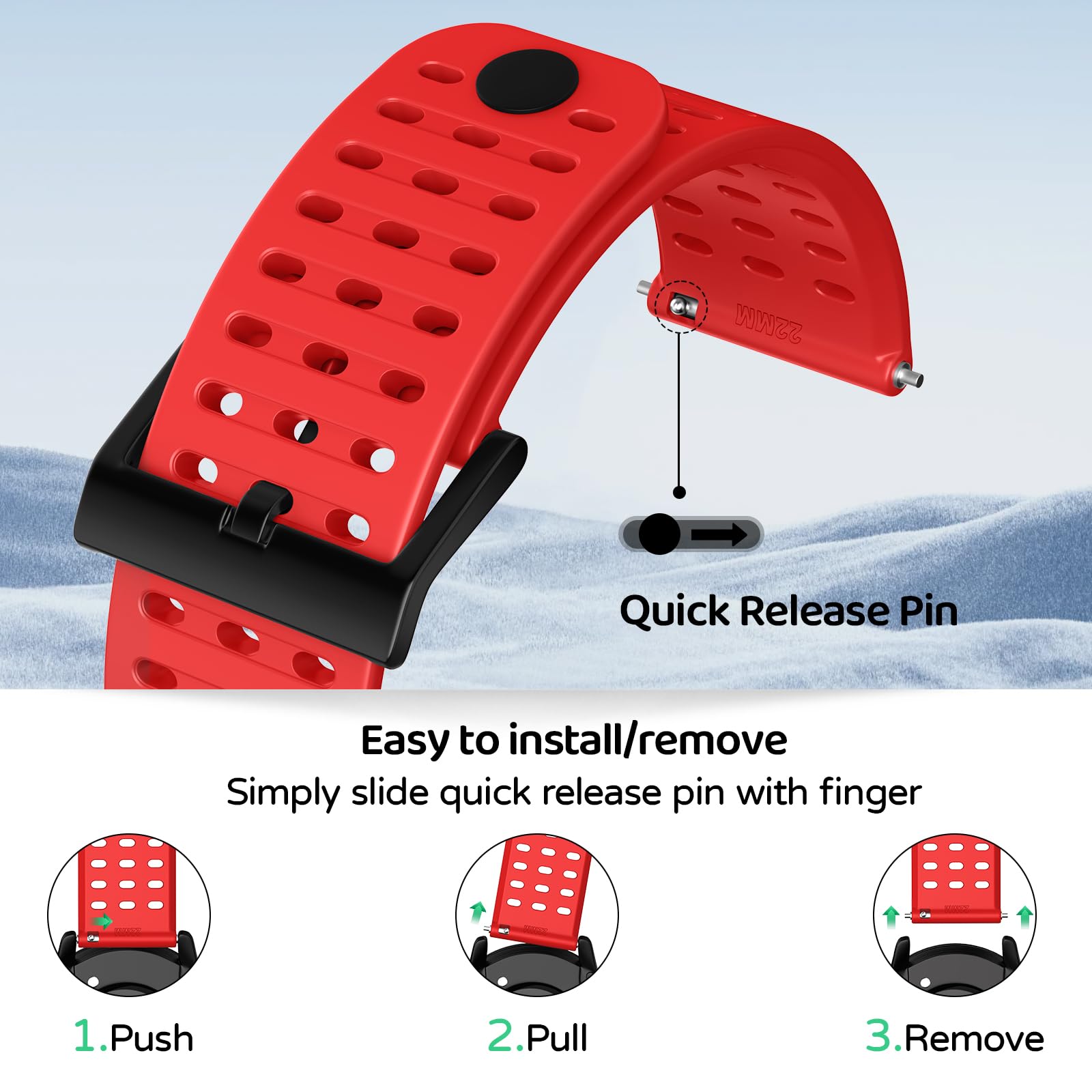 Quick release replacement band, easy to install and remove. No tools required.