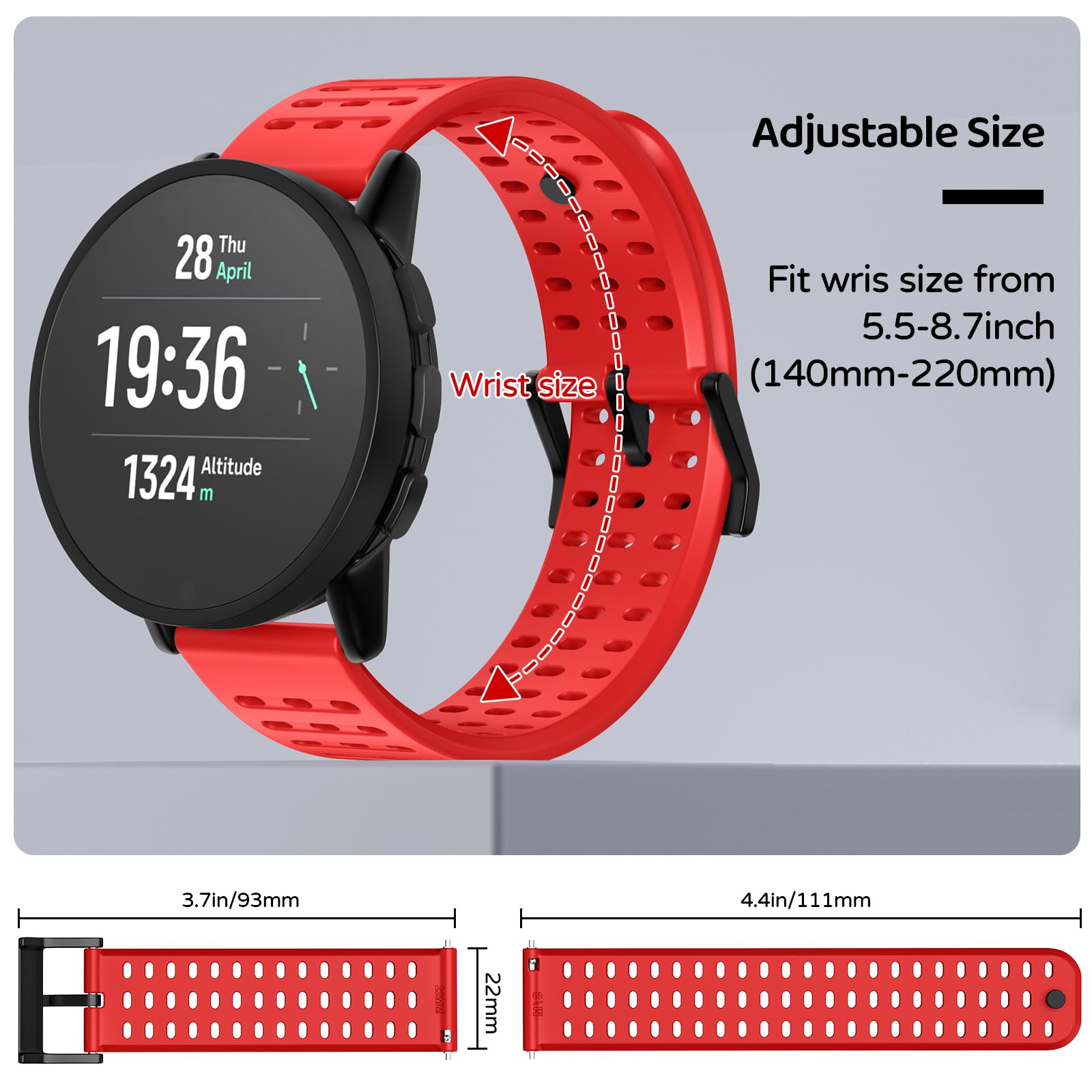Adjustable watch band, wrist size: 5.5 "- 8.7" (140 mm - 220 mm). You can adjust the length to fit your wrist.