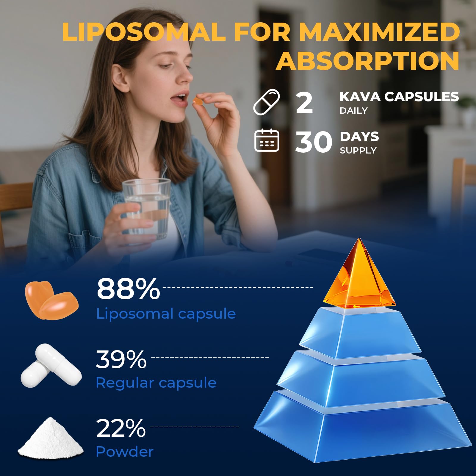 55% Kavalactones with Liposome Technology - The core of the kava kava formula lies kava extract in the 55% kavalactones, the key component for calm and relaxing of kava. Kava root extract with liposome, the bioavailability and absorption are significantly improved. This means kava kava capsules is fast-acting, release stably, and last longer to support sleep peacefully throughout the night