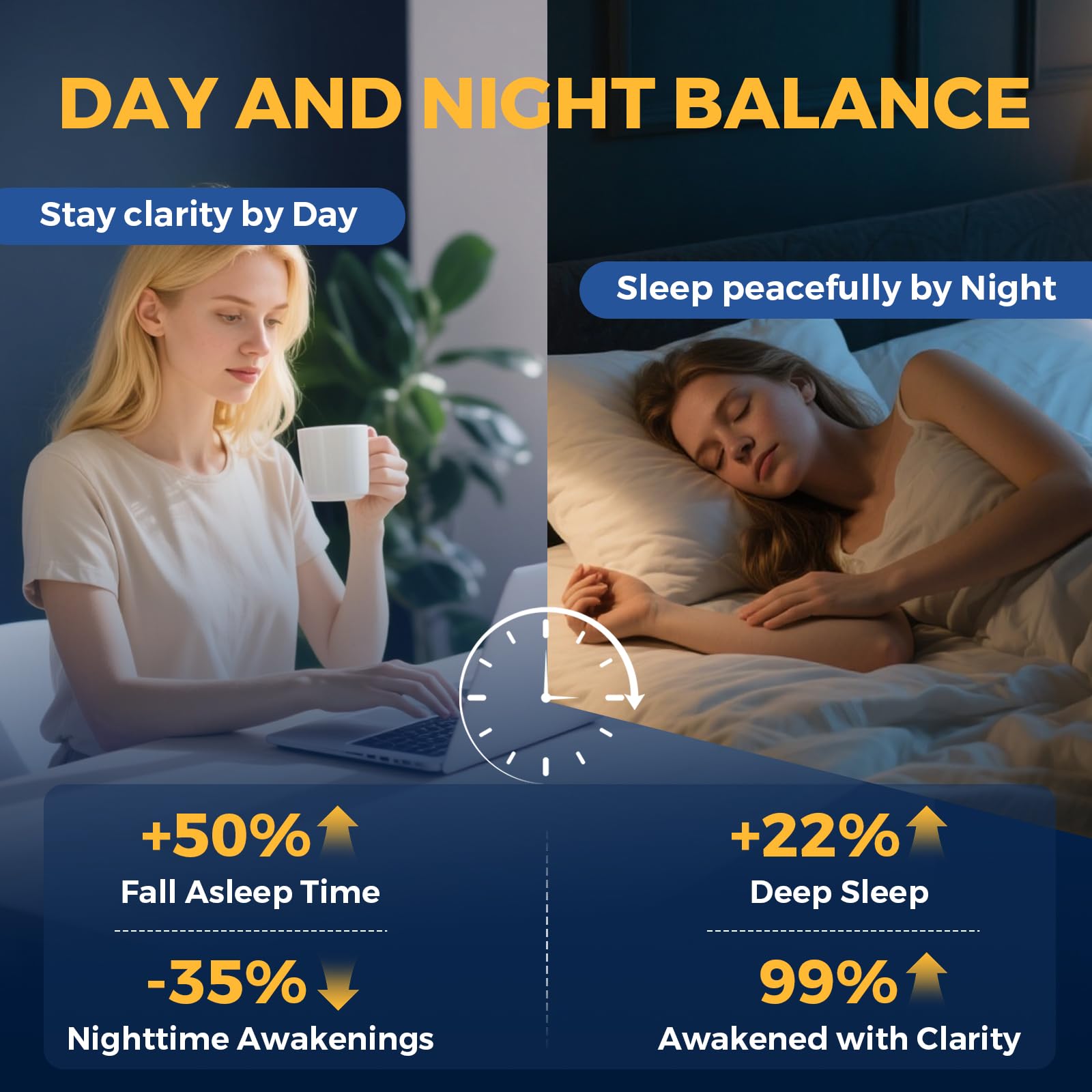Kava with Ashwagandha for Good Sleep - Ashwagandha regulates cortisol levels, boosts stress resistance and mood balance. Kava extract is paired with ashwagandha, passionflower, lemon balm, and chamomile, achieve deep and good sleep. Faster asleep rate is improved by 50%, nighttime awakenings are reduced by 35%, and Slow-Wave Sleep (SWS) is extended by 22%