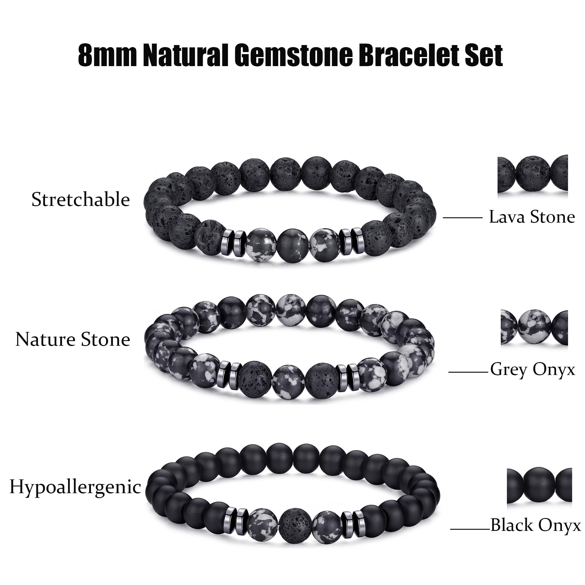 Mens Bracelets Size:The tiger eye stone and black matte agate stone bracelet can Stretch,Bead size:8mm,Adjustable Range: 7.3''-10.4''. Perfect sizes as gemstone bracelet for both men and women UNISEX. Natural tiger eye mens bracelet is a perfect bracelet jewelry accessory for any occasion to change your style and mood.