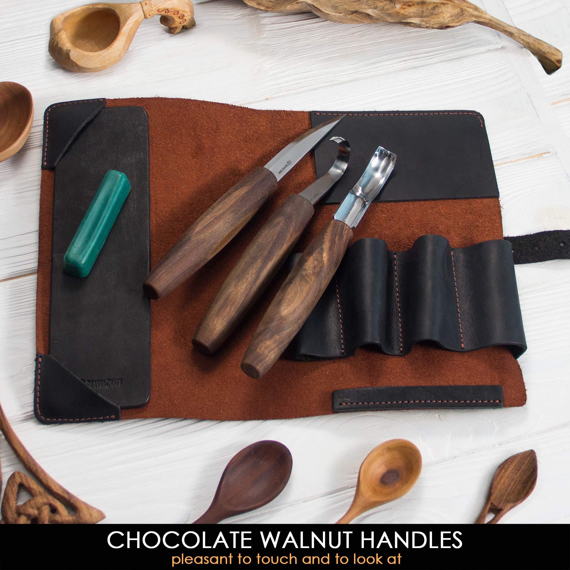 Easy-to-Use Wood Carving Knife Set: Our spoon carving tools feature chocolate walnut handles that feel comfortable in your hands and are designed for effortless use.