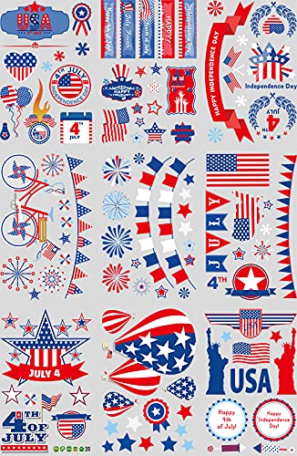 Window Decals☀ Independence Day window clings are full of many elements printed with Patriotic flags, stars, USA, love heart pattern, mainly in blue, red and white color.