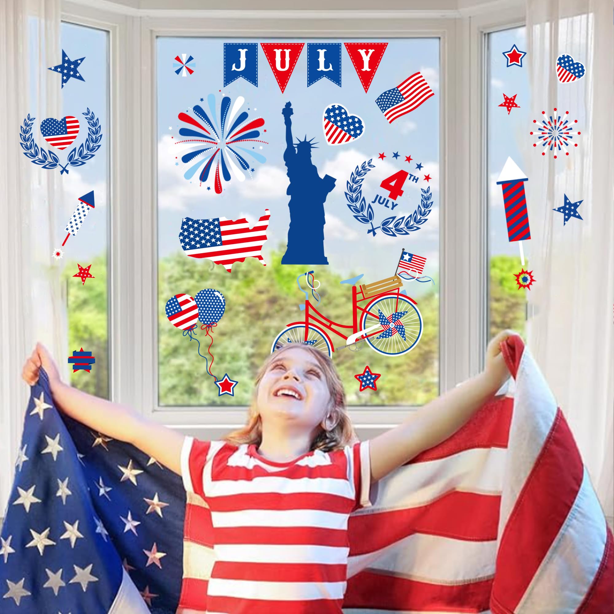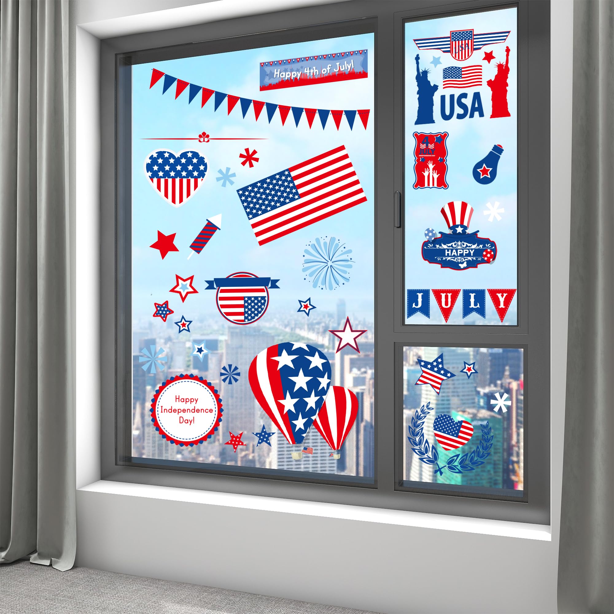 Patriotic Decorations☀ This Patriotic decor window clings are designed for the Ameican people. Paste them on the office window, glass doors, refrigerator, or bedroom. And they can be also used as a wonderful gift for your friends.