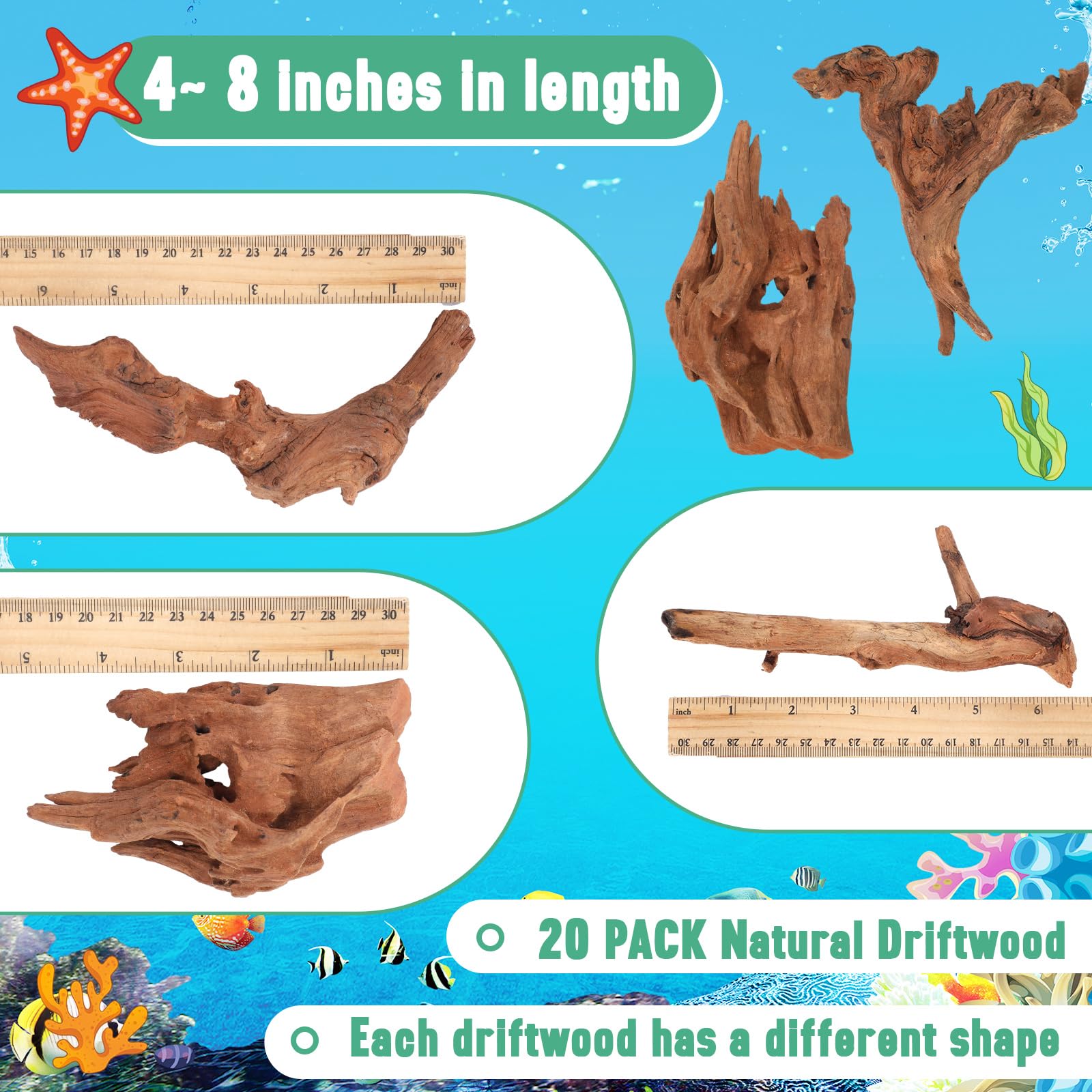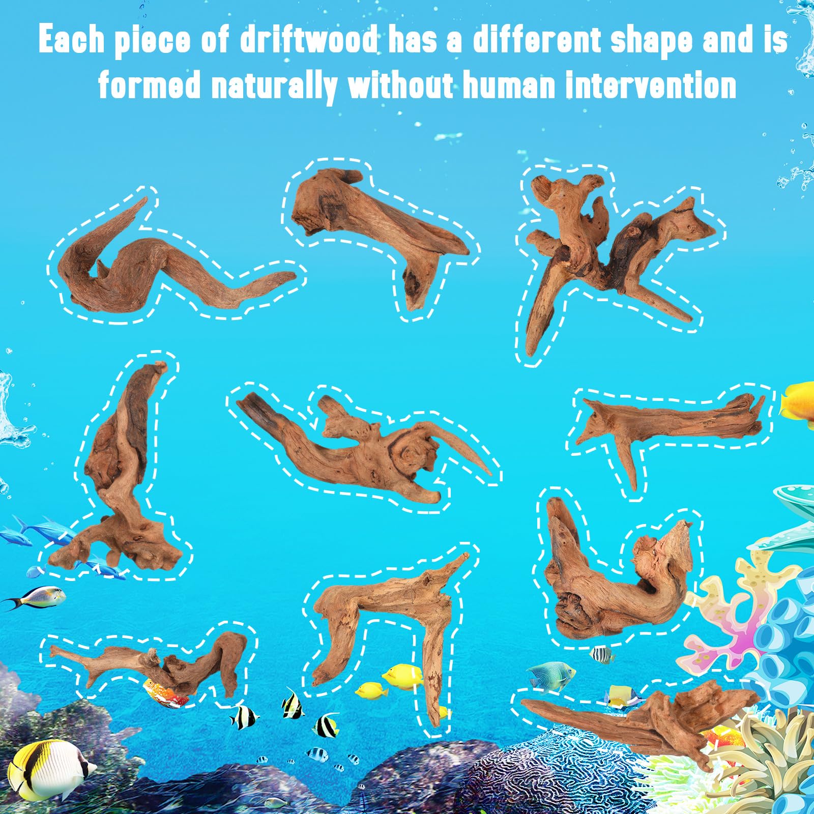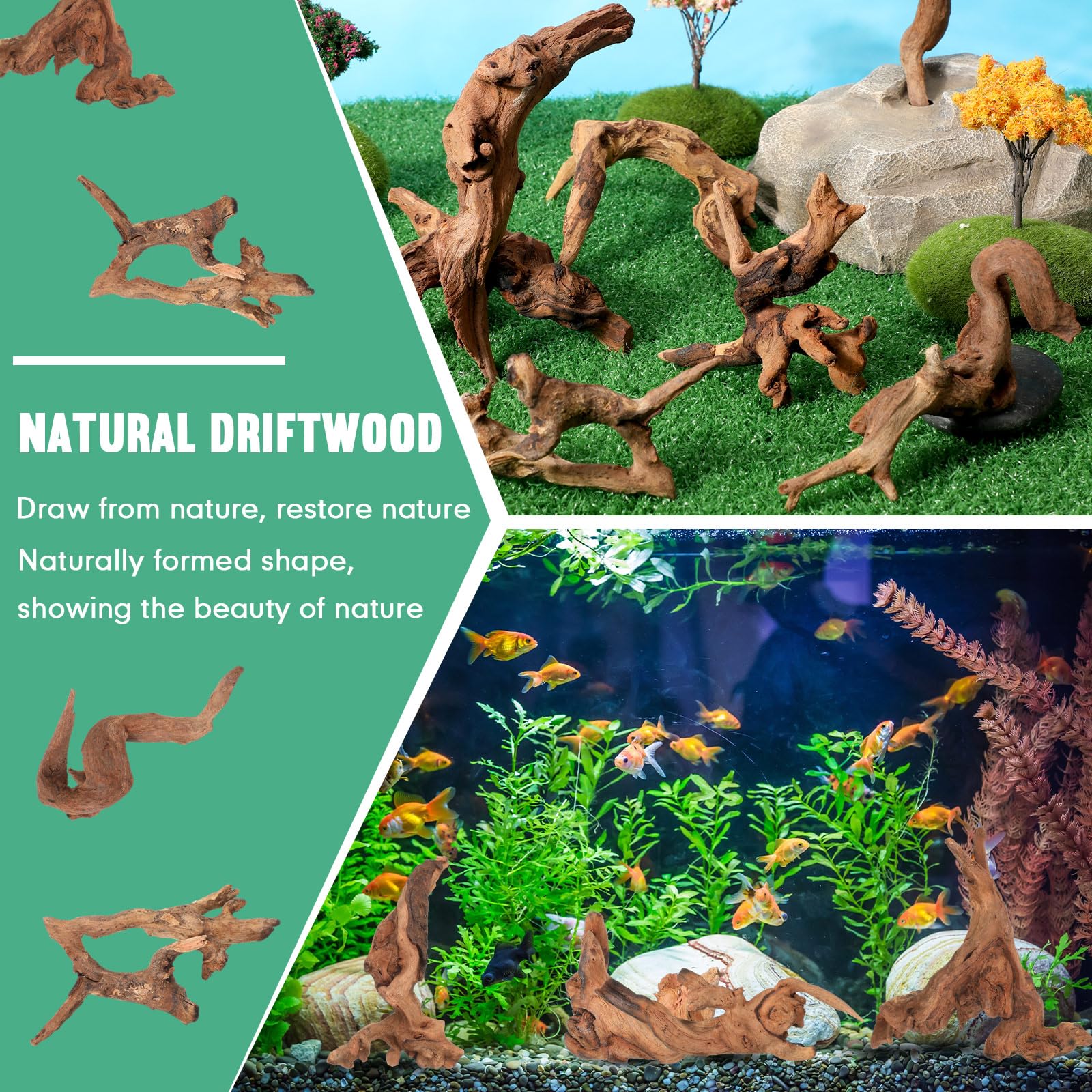 Long Lasting Driftwood Material: crafted from quality driftwood, these fish tank decorations are good for their robustness and longevity; Whether applied under water or in dry environments, they can withstand prolonged use