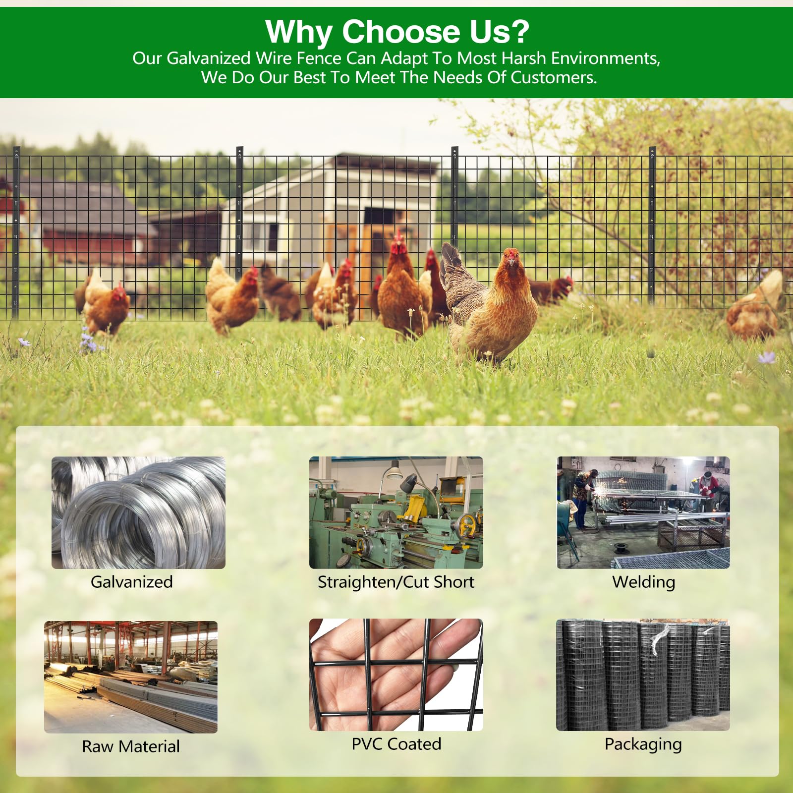 𝗣𝗥𝗘𝗠𝗜𝗨𝗠 𝗤𝗨𝗔𝗟𝗜𝗧𝗬 𝗙𝗘𝗡𝗖𝗘: Welded mesh fence is made of heavy-duty galvanized wire and available in black vinyl coating, its smooth surface makes it easy to clean, protects the environment and does not harm animals to maximize rust resistance and longevity.