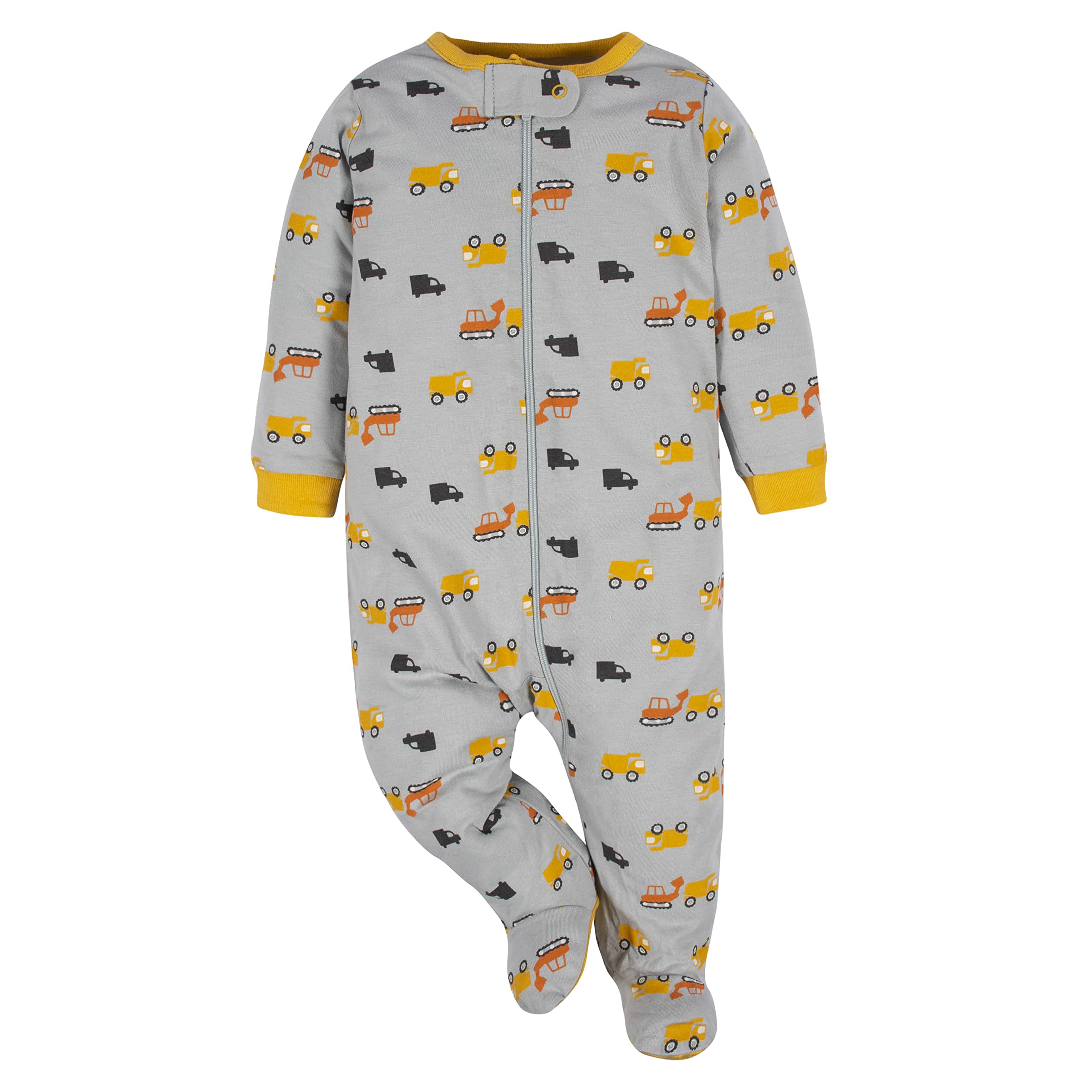 Description Gerber Sleep ‘n Plays are the ultimate footie pajamas baby is sure to love! These soft footies are made with 100% cotton, a comfortable fabric that’s perfectly breathable to prevent irritation against baby’s delicate skin. They’re appropriate to use as newborn footie pajamas as they’re made to comply with all safe sleep standards. They’re also available in sizes all the way up to 6-9M to fit older or larger babies. Each Gerber Sleep n’ Play features a zipper down the front of the outfit to allow for easy and fast diaper changes. This zipper makes the baby sleeper incredibly easy to put on as well as to take off. Atop the zipper is a safety tab with a snap to keep the zipper held in place. This reduces irritation caused by baby’s chin being poked by the zipper. These baby sleepers are footed to add extra warmth which is wonderful for sleepy time as well as if there is a chill in the air. It also means no fooling around with baby socks! These footie pajamas kids will love to wear to bed because of their supreme comfort as well as cute and fun patterns. Available in assorted colors and patterns, they’re suitable baby girl sleepers as well as baby boy sleepers. Babies love the comfortable feel and parents love how cute they look! But these Sleep n’ Plays aren’t just for sleep! They’re wonderful comforatble, casual outfits to wear during the day. They allow babies mobility and provide warmth. They’re perfect for play but are cute enough to be worn out on the town! These outfits are perfect to wear on a stroll outside, to the grocery store, to day-care, or to grandma and grandpa’s house! The possibilities are endless! The versatility of these outfits truly gives them a spectacular value that all parents will appreciate. They make an excellent gift for any baby boy or baby girl you know and love! Gerber provides high-quality products that are easy and convenient for parents as well as cute and comfortable for baby. Gerber provides safe products that parents can trust.