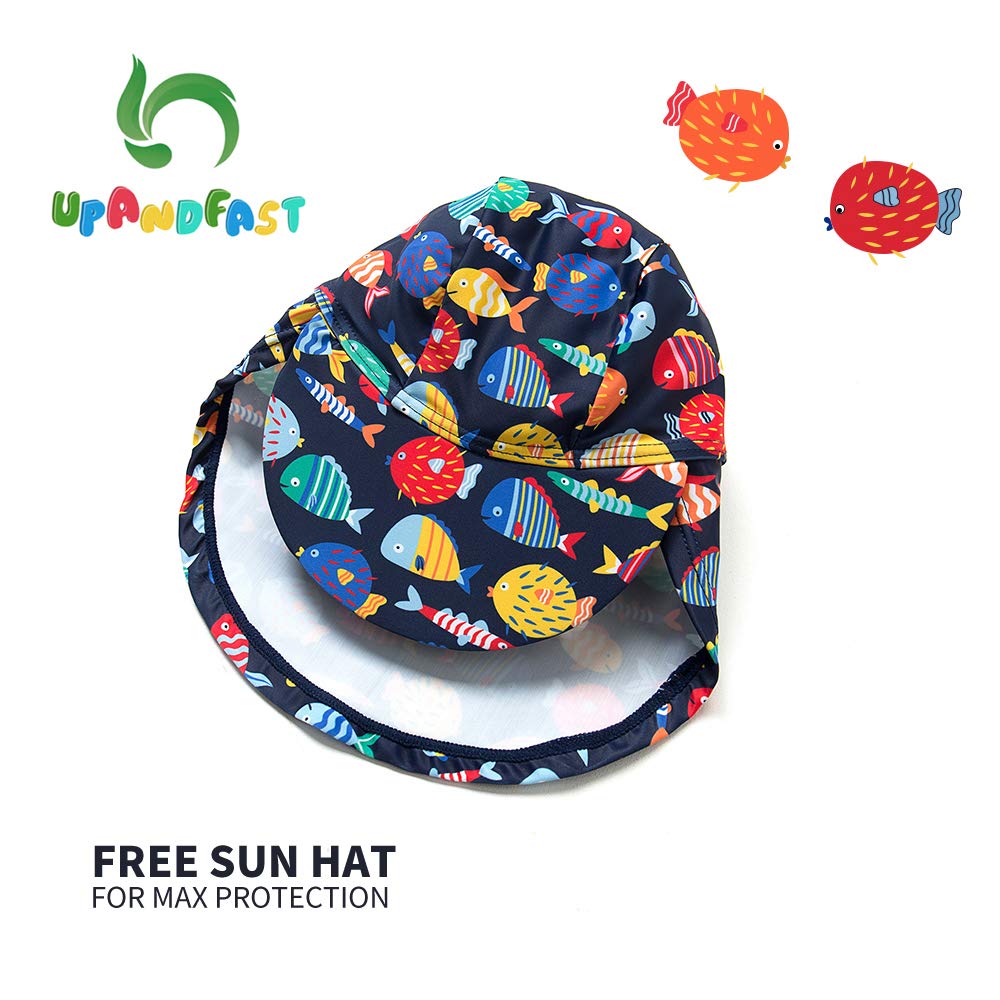 CUTE SUN HAT: Toddler rash guard that comes with a lovely hat, it covers baby's delicate face and neck. which can give baby more protection when playing at the sea, beach or under the sun