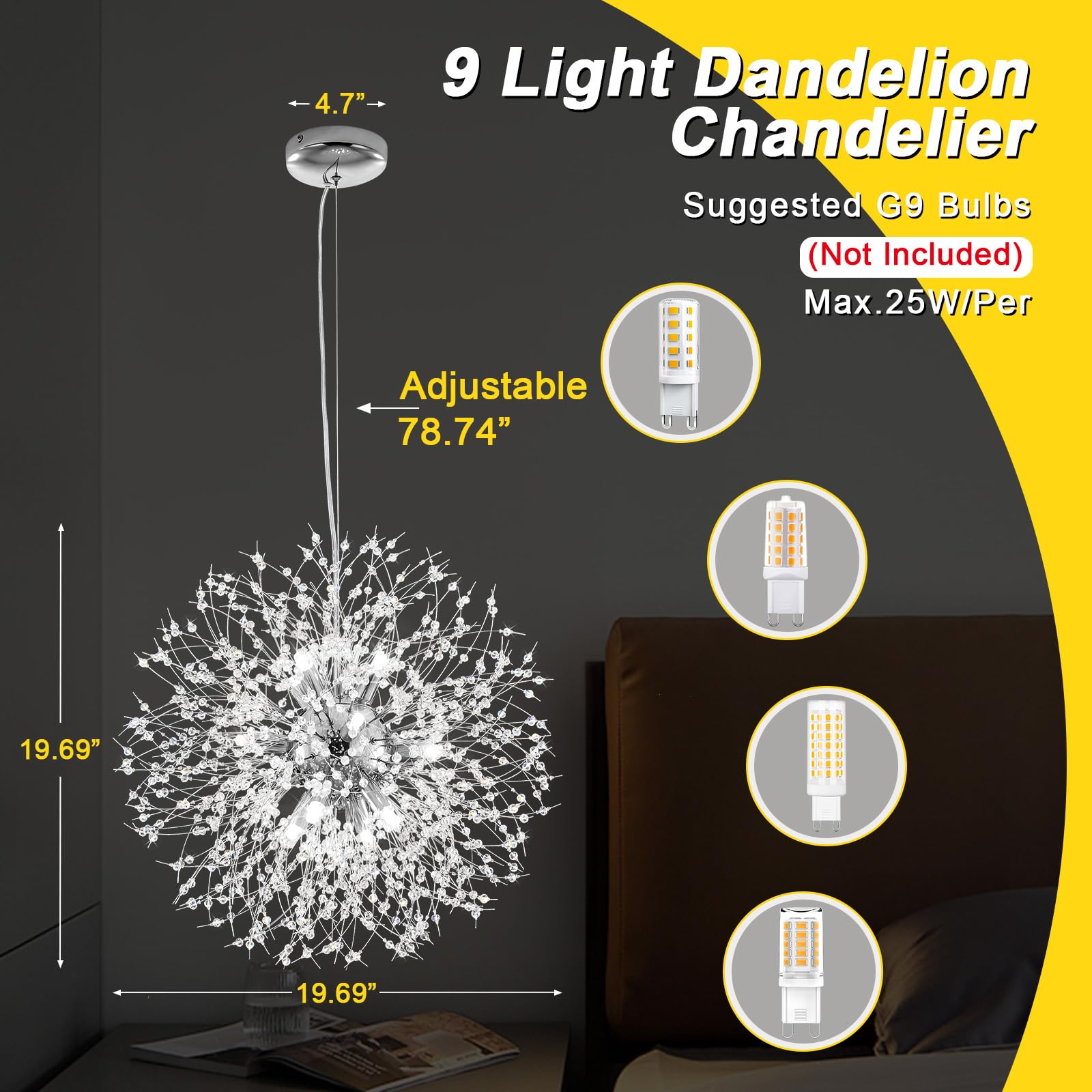 BULBS and dimmable:The different lighting effects shown in the picture depend on the light bulb you are using. Bulb Base: G9/110-120 V(Bulbs NOT included). Dimmable: It is dimmable when used with dimmable bulb and compatible dimmer switch (Not included)