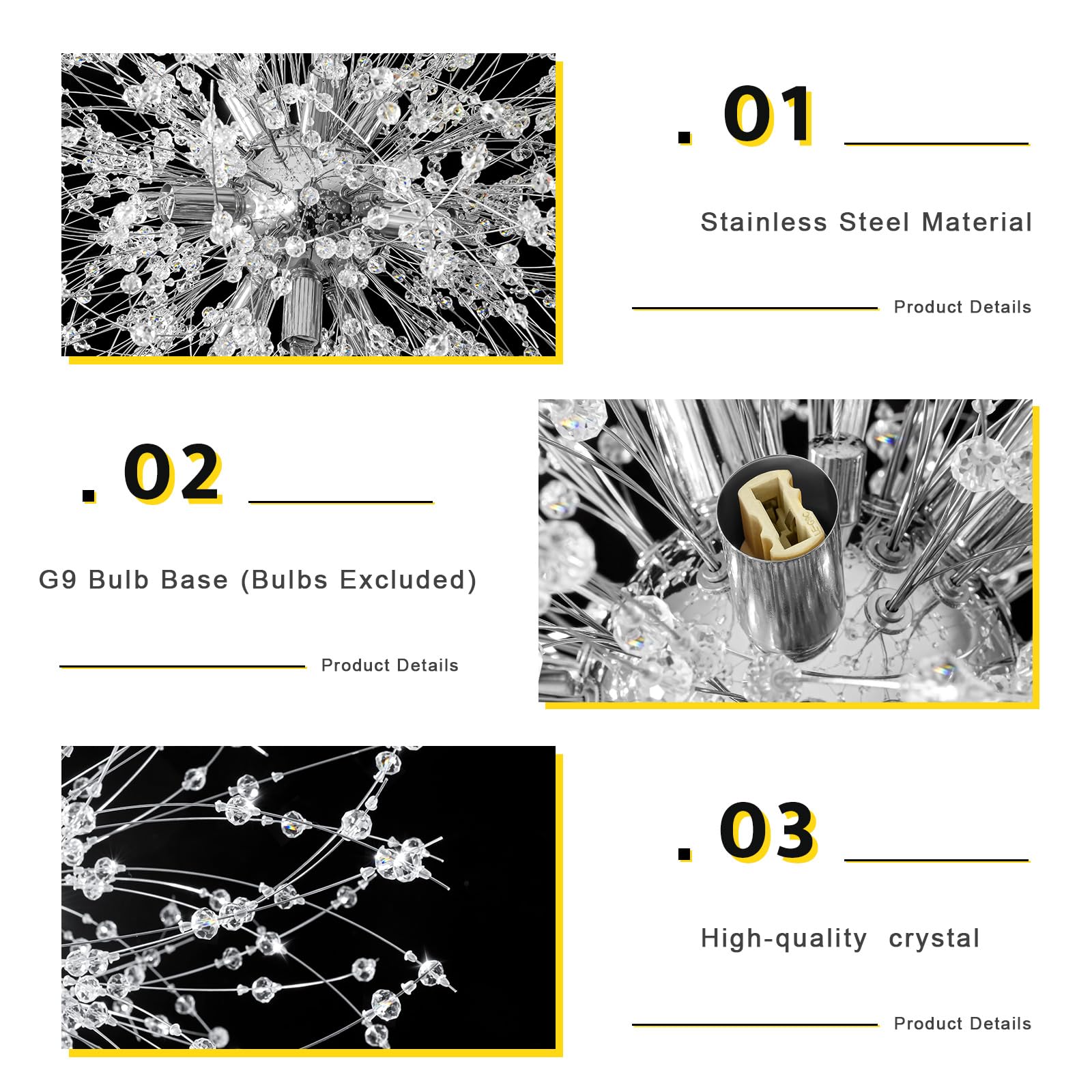 Crystal Beads:Nano-cutting crystal beads, smooth and shiny, as well as splatter the sunshine into rainbows. When the lighting hits the crystal beads, they cast hundreds of rainbow prisms in the air