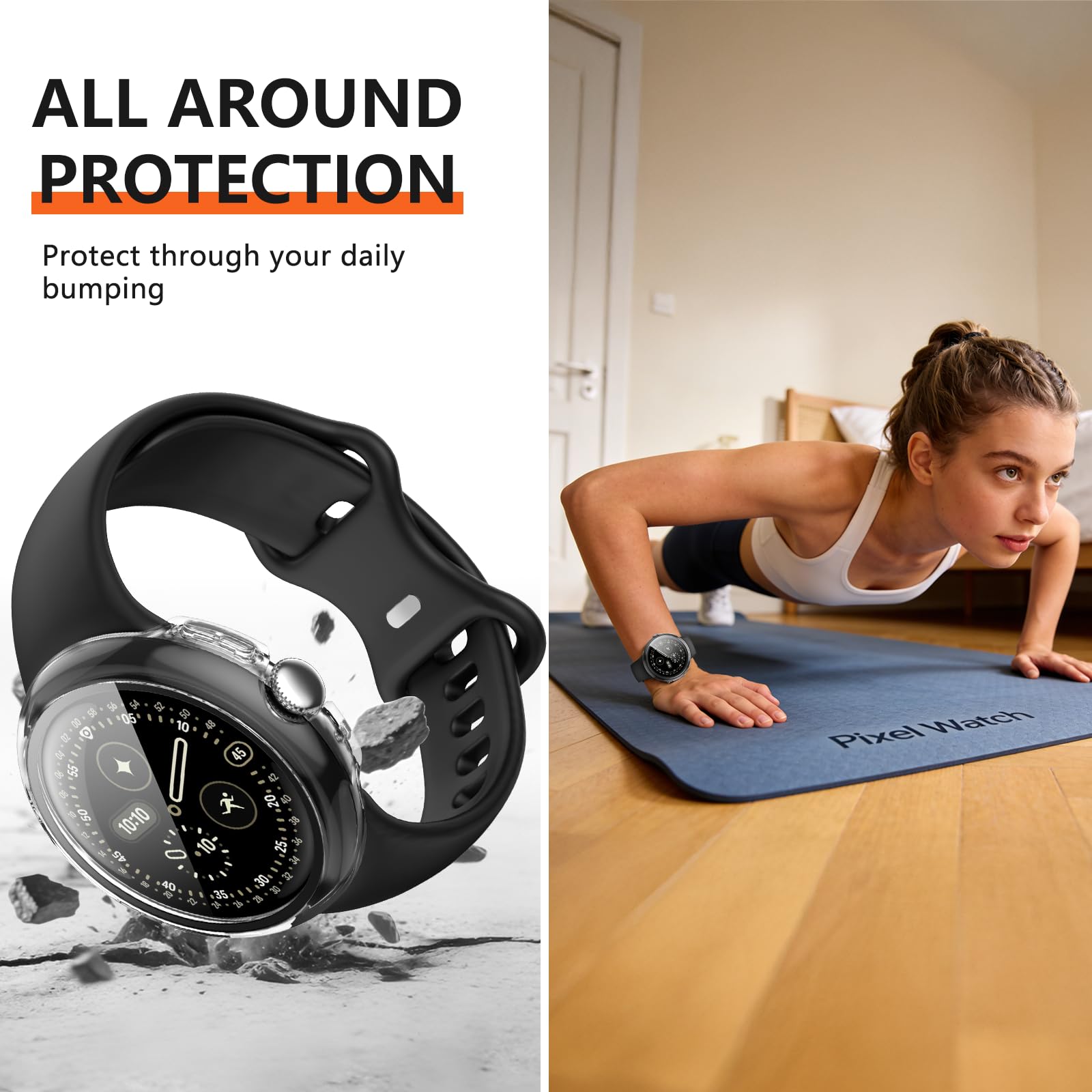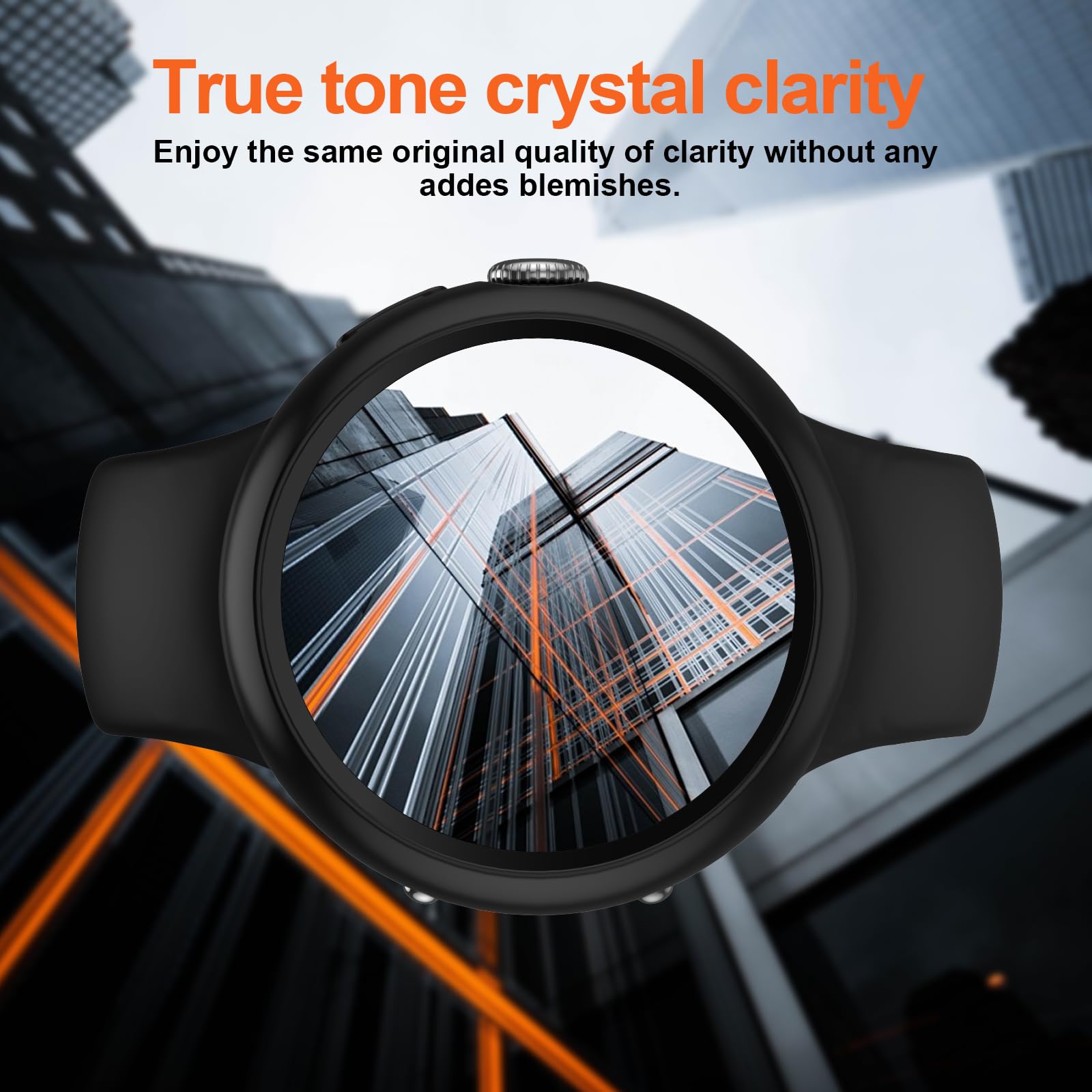 【2 In 1 Design】: Durable PC case built in slim HD clear tempered glass screen protector,all Around protects your Pixel Watch 3 from scratch, bumps and accidental drops.Super easy to install for its snap-on design,and charge directly