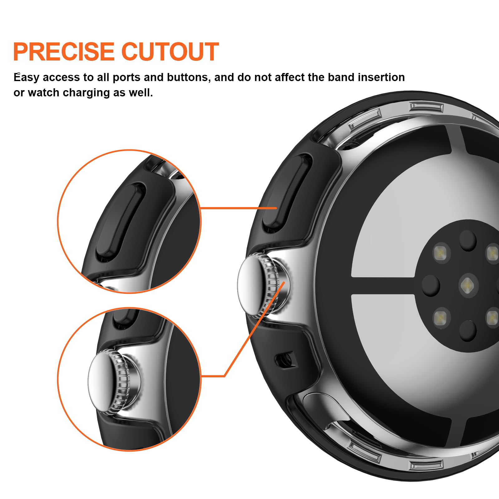 【Easy to Take On & Off】: With Precise Cutouts for functional buttons and ports, you can easy snap on and take off the case, Do not affected the band insertion or watch charging.It can be reused and is more durable than simple Tempered Glass film