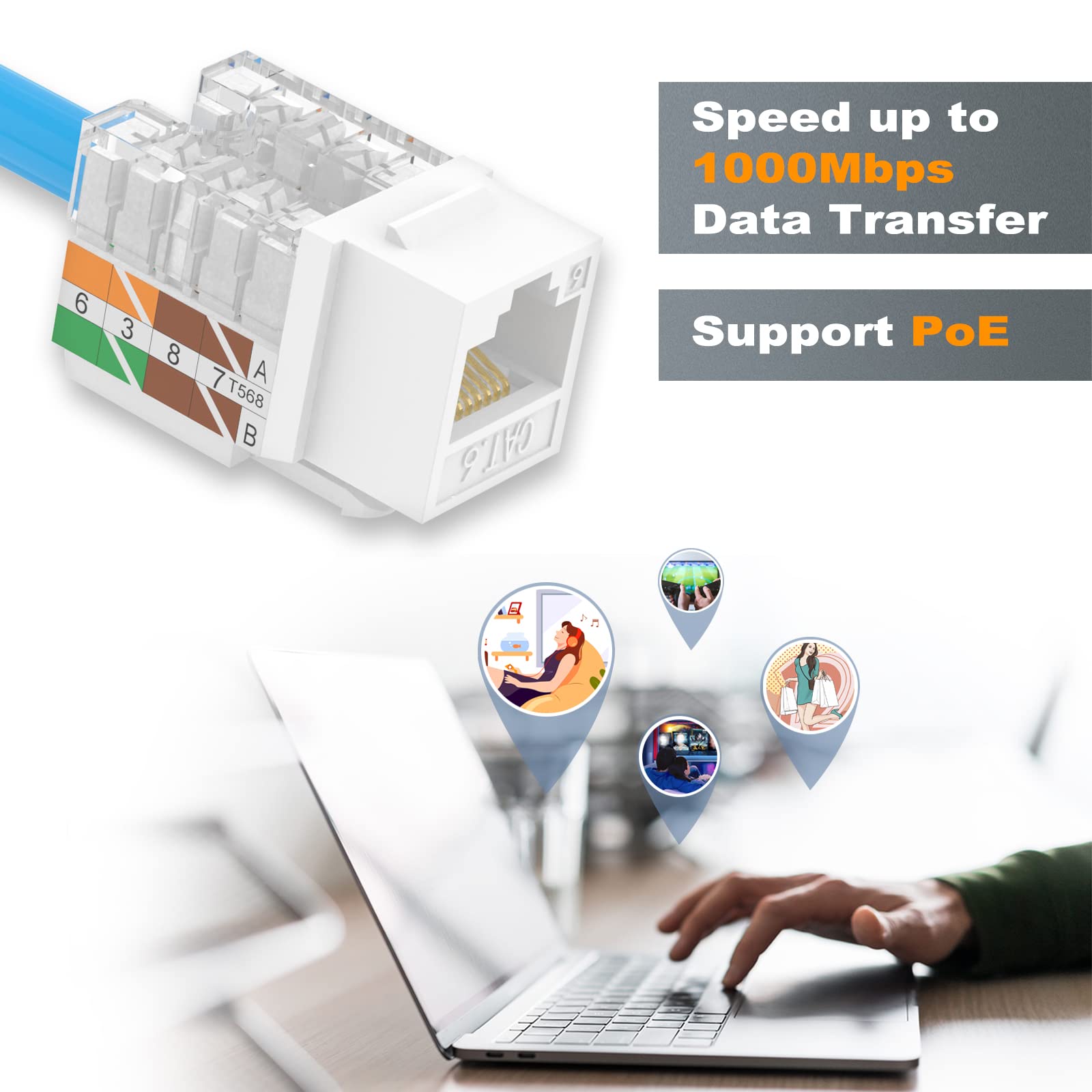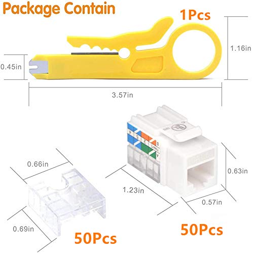 Package Content: 50 x Cat6 punchdown keystone jack UL Listed (E521847) + 1 x wire stripper cutter, worry-free 18-month warranty, and friendly customer service.