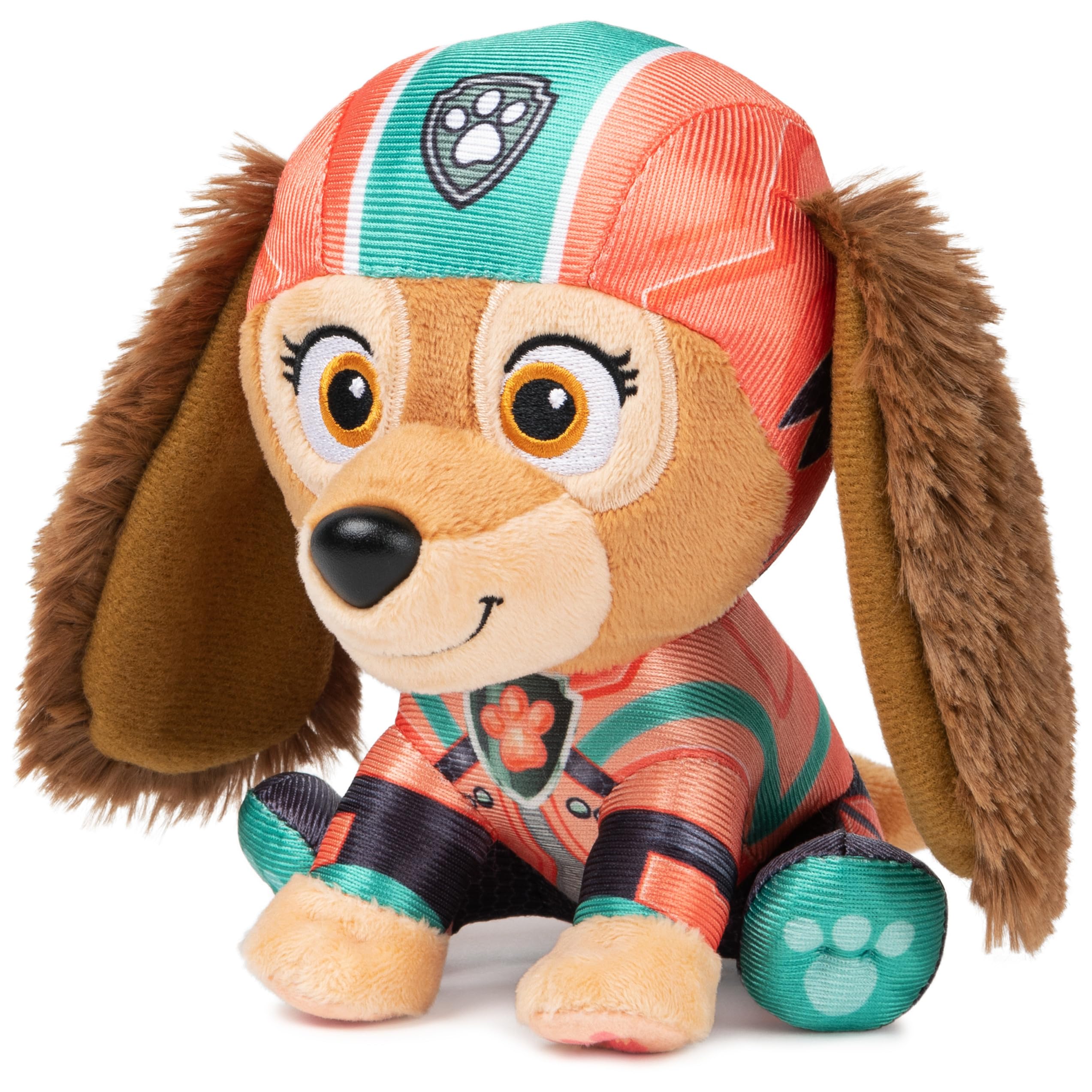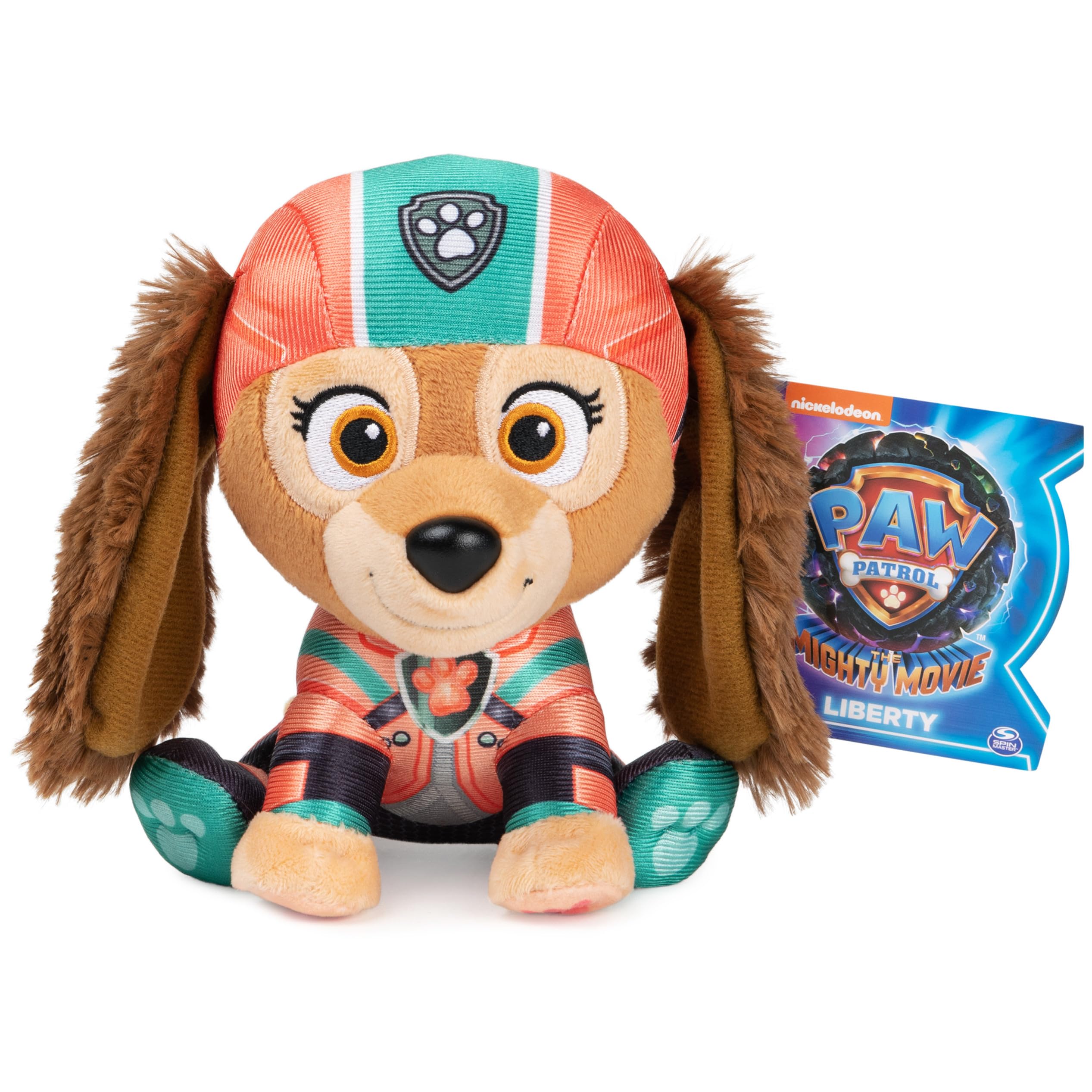 LIBERTY PAW MOVIE 2 PLUSH: This cuddly 6” plush features Liberty from PAW Patrol: The Mighty Movie This Mighty Pup has a sleek coral/teal uniform, embroidered facial details, and soft, fluffy ears. Perfect for preschoolers and collectors alike