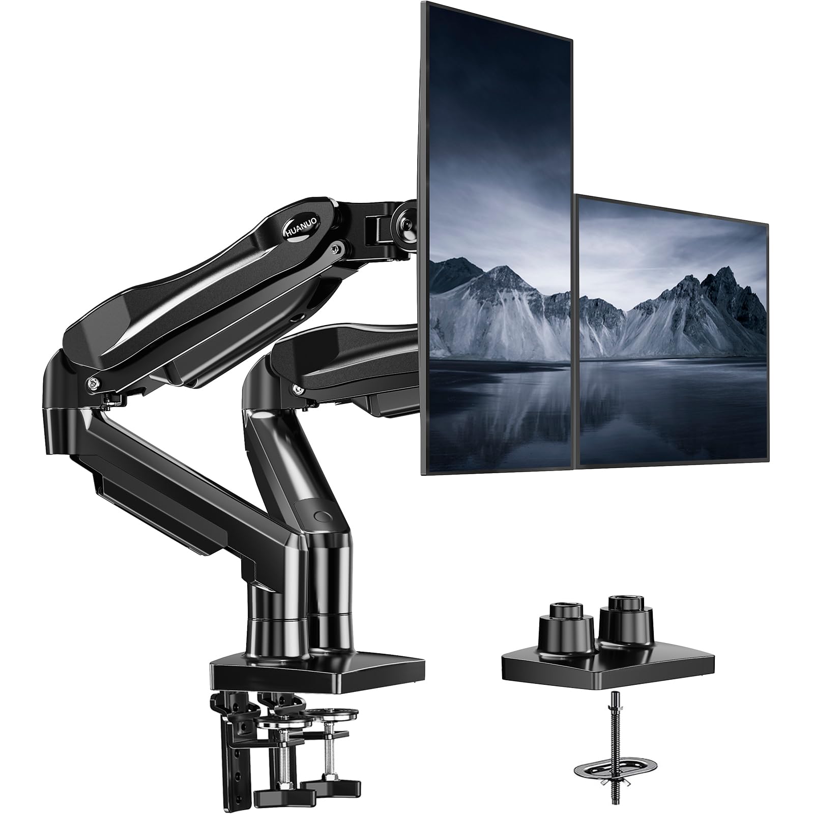 Dual C-Clamp Hold - Worried your dual monitors might wobble or slip? Our upgraded base uses a larger platform plus a dual C-clamp structure to lock the dual monitor arm firmly to your desk. Each arm safely keeps your screens steady while you type, click and game—no shaking, no sliding, just a clean and secure setup you can trust every day. It also provides Grommet Mounting installation choice, both options ensure stable and secure fixation for your 0.59" - 3.54" desk.