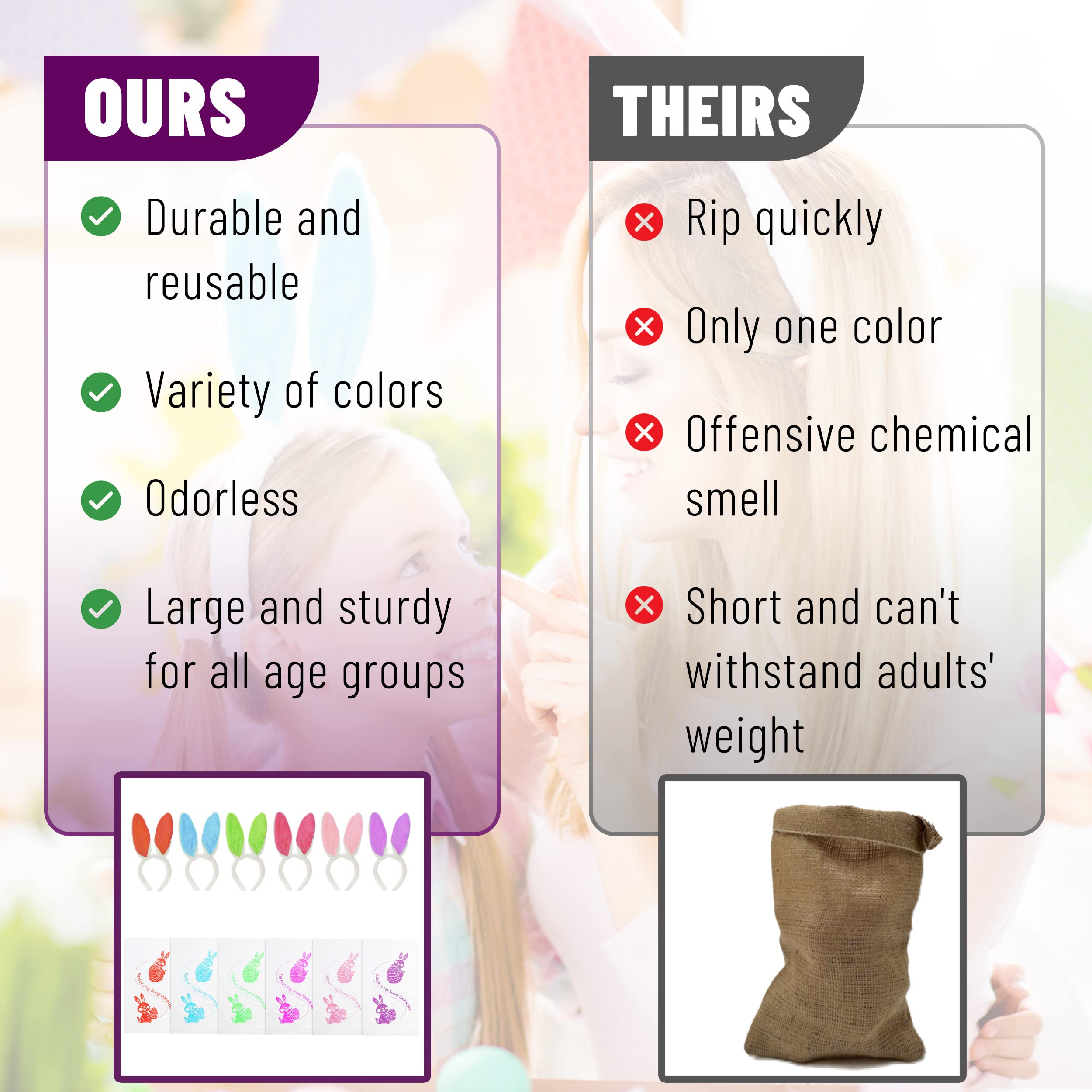 Our Easter sack race bags are in a perfect size, about 38.2 x 23.5 inches, for both children and adults, and can be folded down to use for small children. Just jump into the bag with the rabbit ears headband and begin your game!