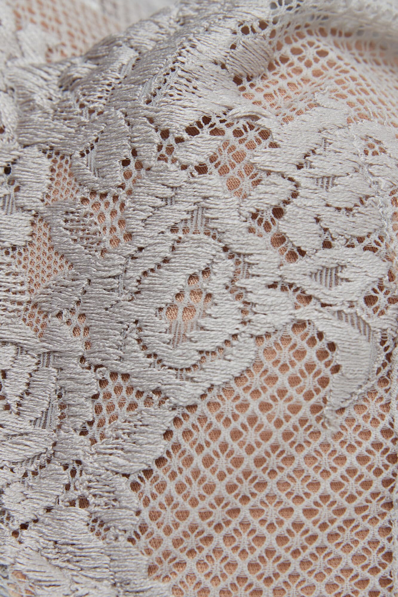 It is made with a sophisticated and elegant stretch lace that features either a tone-on-tone or contrast color floral embroidery, depending on the version presented