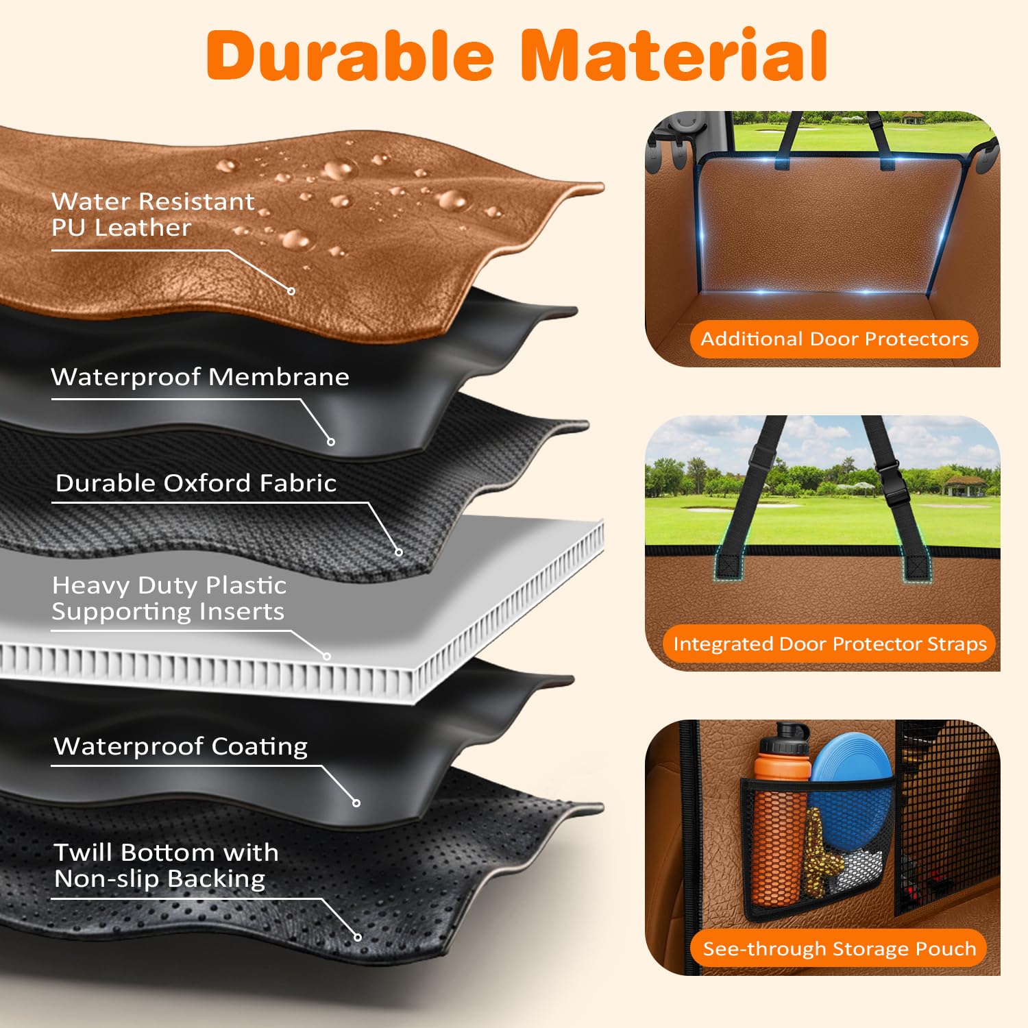 Non-slip & Waterproof PU Leather Material: Made of textured leather, The dog back seat extender provides extra grip, and resists scratches. Its waterproof surface allows for easy wiping away of dirt, mud, and pet hair