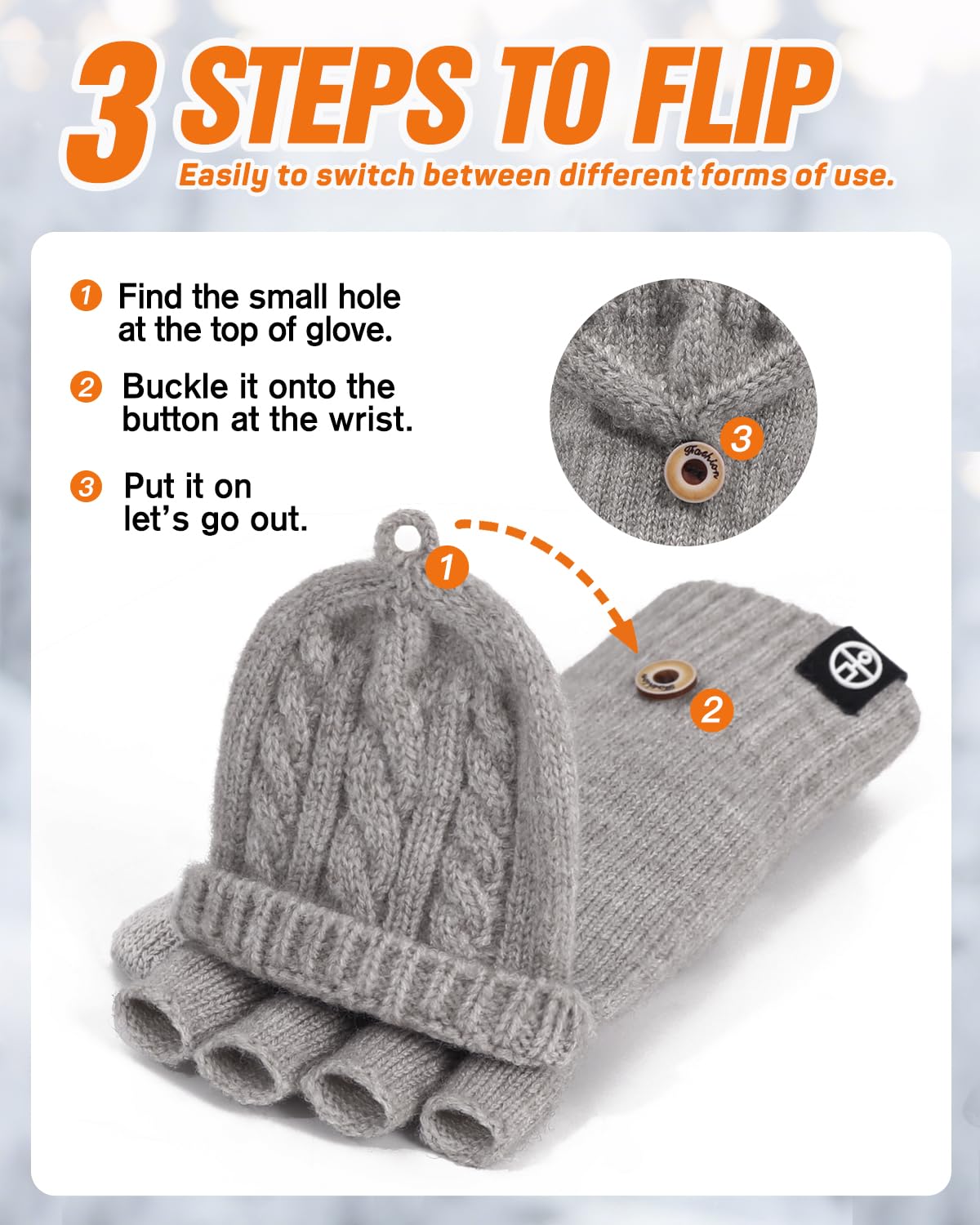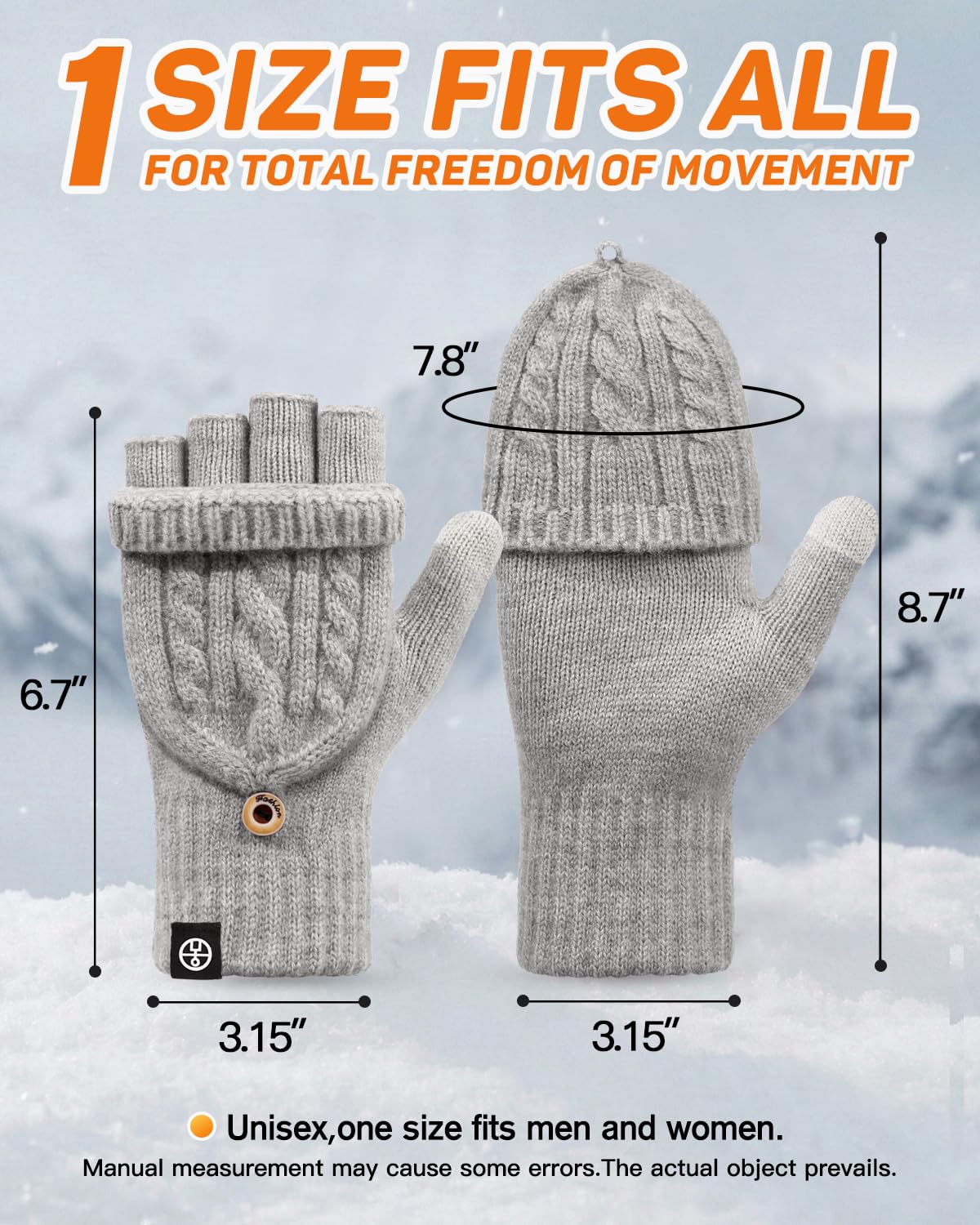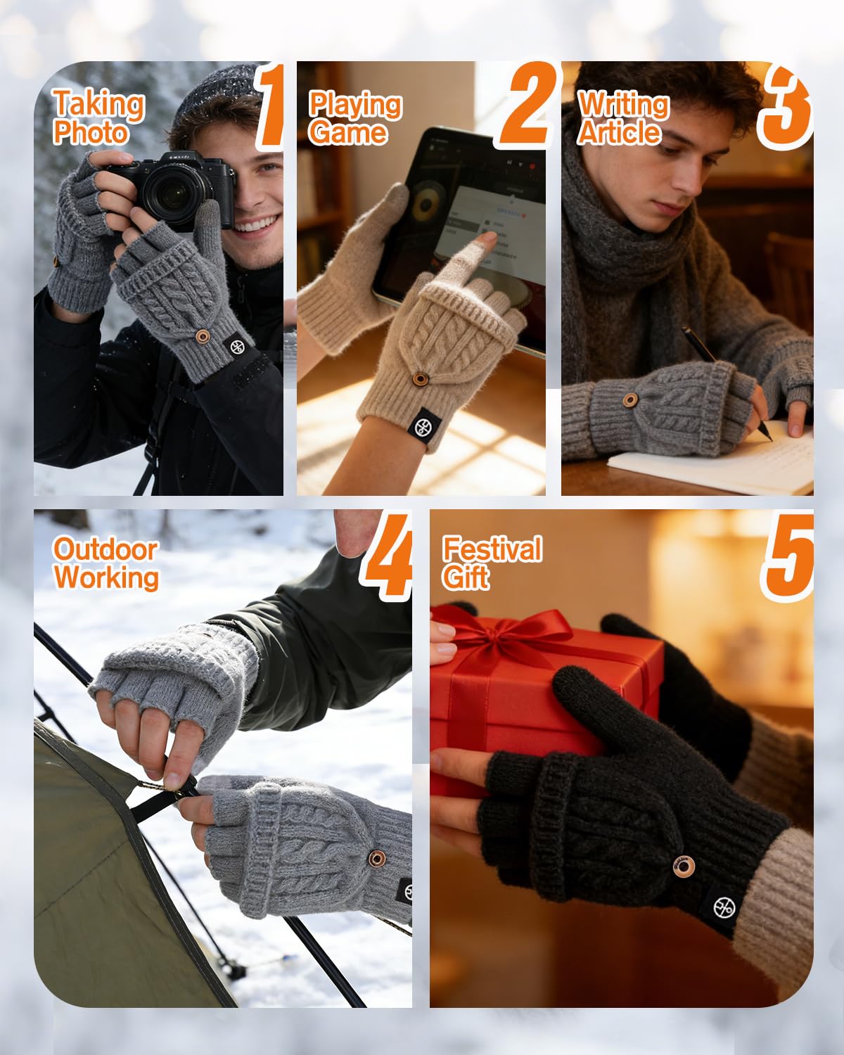 【3D Pattern Design】These thermal fingerless gloves feature 3D classic pattern design, with a sleek, versatile look and perfect hand fit. Designed with 4 separate fingers and a flip-over mitten cover, you can switch freely between full-coverage warmth and finger-exposed operation. The button-secured flip cover balances warmth and functionality, ideal for daily use.