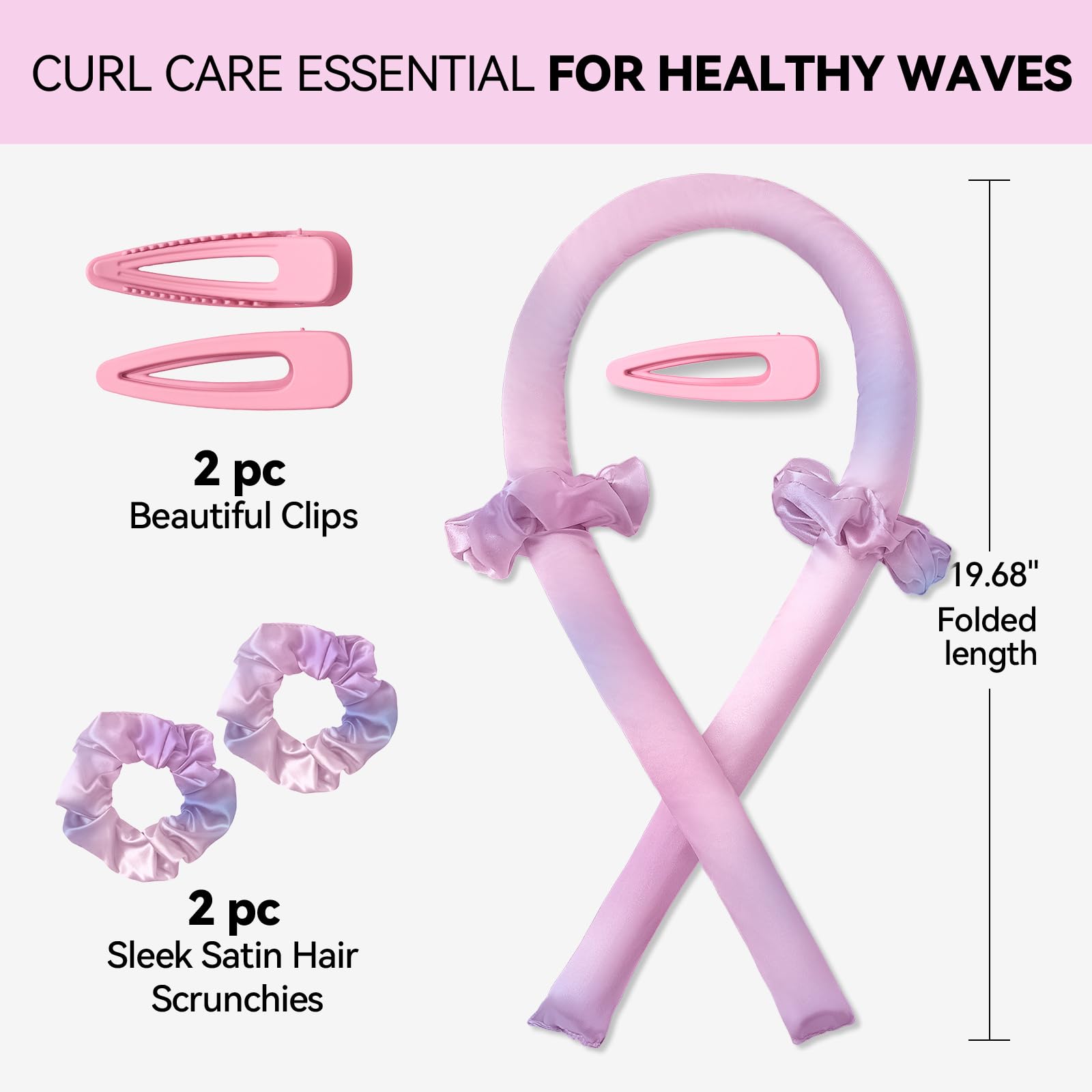 Luxury Gift-Ready Set: Complete with satin curling rod, 2 scrunchies, 2 clips, complete heatless curling set in a chic gift box. compact size (9.25" x 3.2"x2.7") fits carry-ons—ideal for holidays, birthdays, or gifting. Empower every woman to embrace heat-free beauty