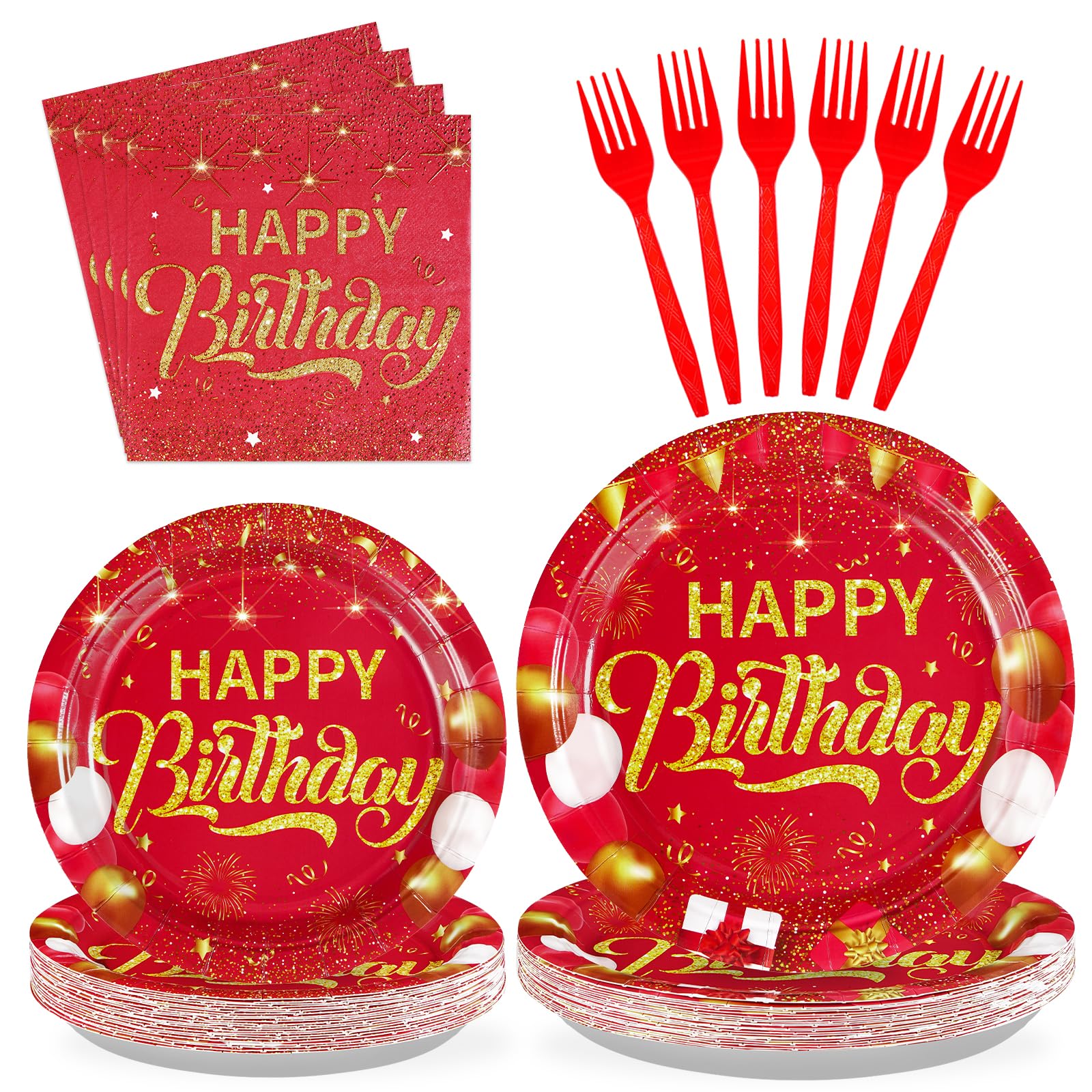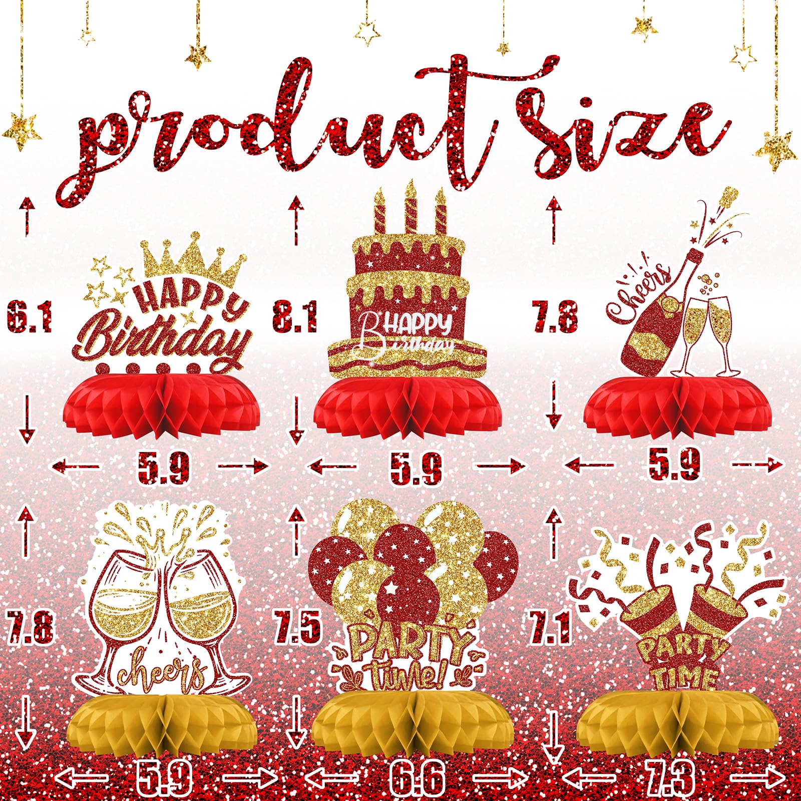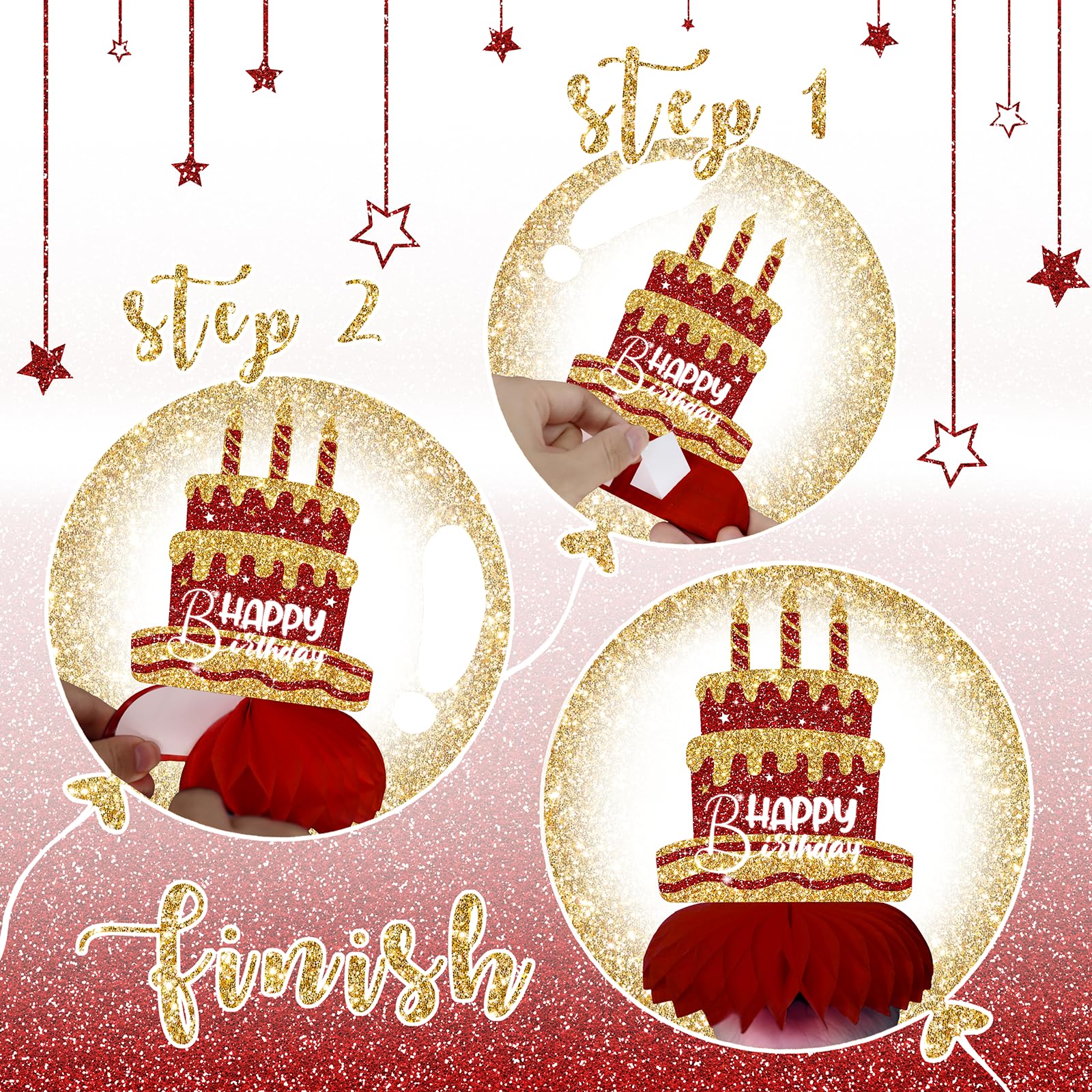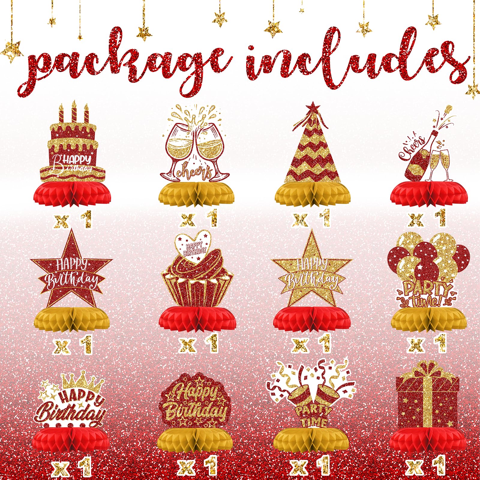 Perfect for Celebrating in Style – These happy birthday table decorations work for men’s birthdays, elegant events, or red-gold-themed milestone parties.