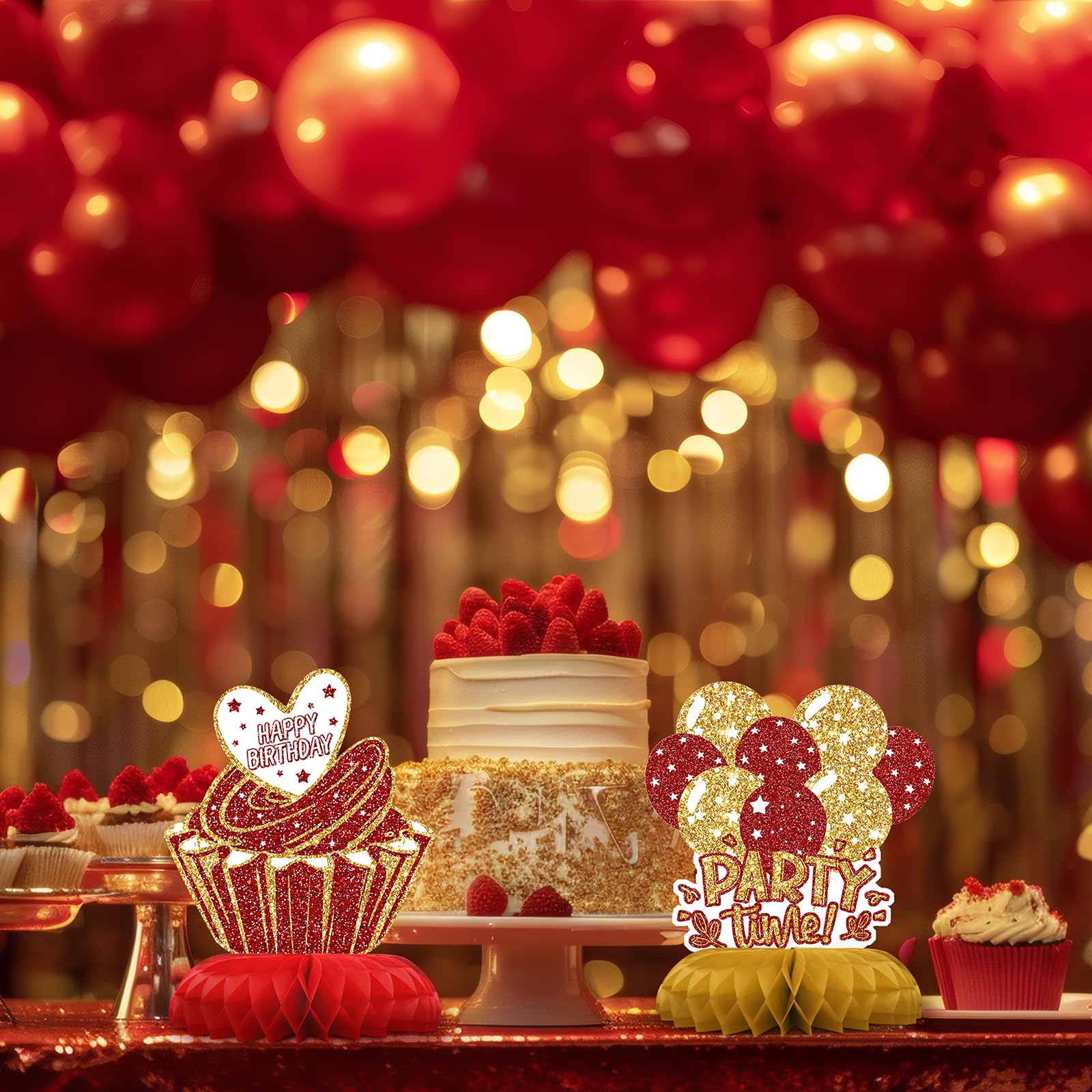 Red and Gold Birthday Decorations for Table – Striking and festive, these red and gold table centerpieces bring a vibrant and luxurious tone to adult birthday celebrations.