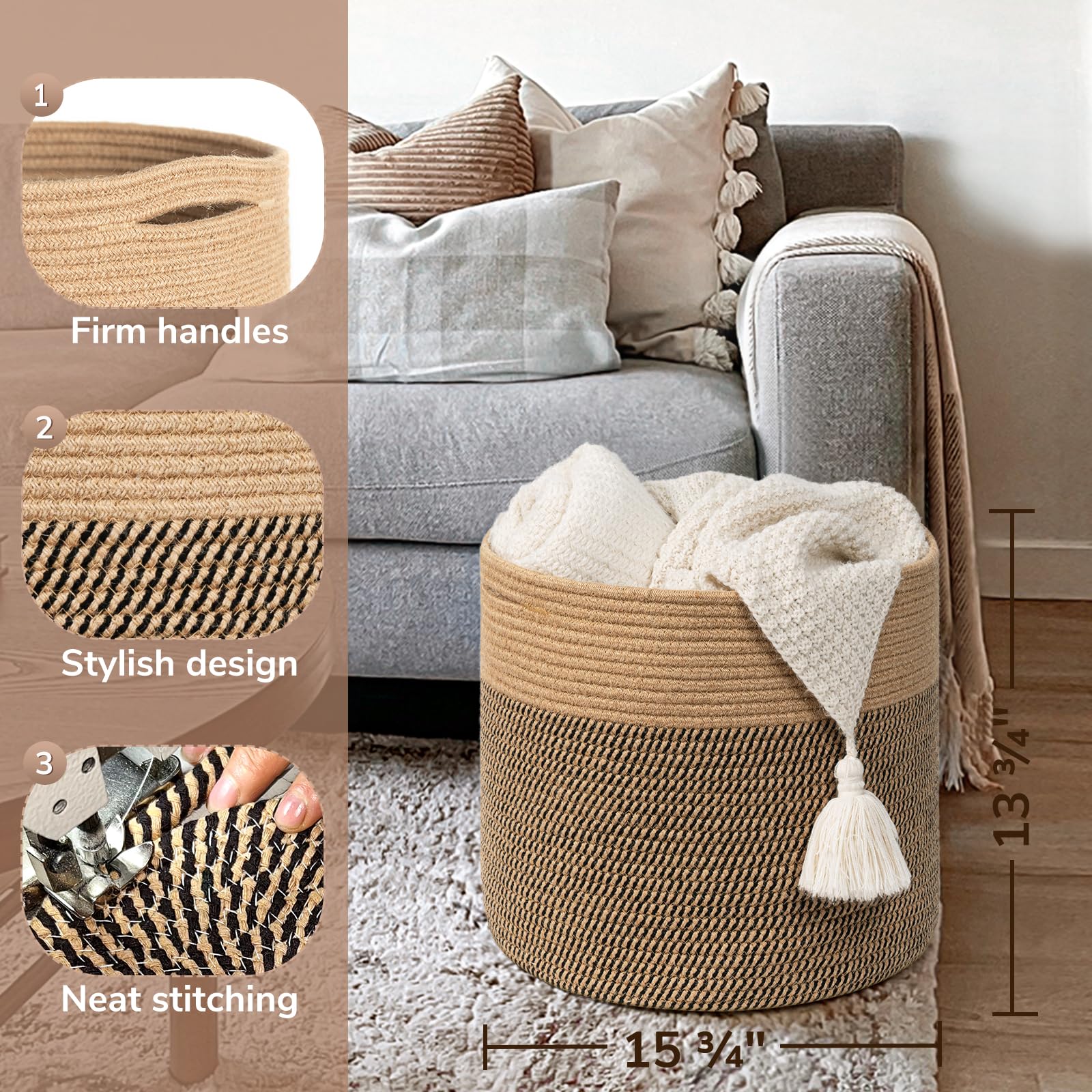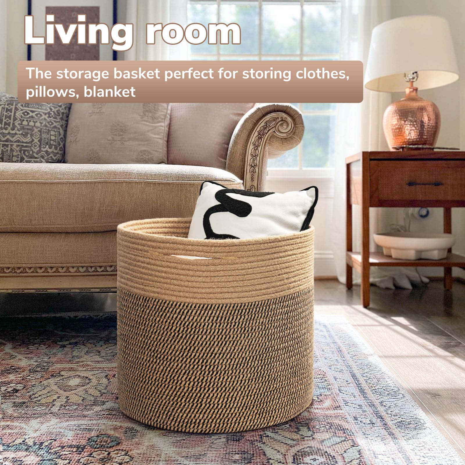 Extra Large size: 15.8'' x 13.8''. It will be a great laundry basket, blanket basket, baby toy basket to Keep in the kid room, family room, or any room in the house that could use extra storage: fits on a closet shelf, bookshelf or desk