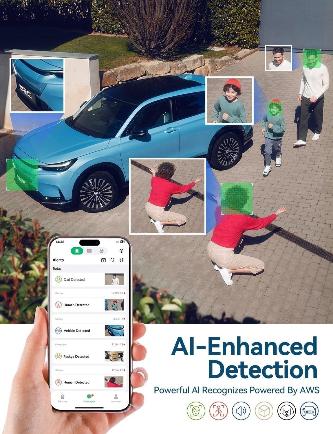 【USA Local Safety Storage Station】Backed by newest AES256 AI algorithms and cloud services powered by Amazon AWS, FOSCAM outdoor security cameras offer industry-leading dual privacy protection and data security. Embrace effortless footage storage, supporting up to 512GB of SD card storage, and NVR support the onvif protocol. Bid farewell to false alarms, as our surveillance & security cameras accurately identify humans, vehicles, pets, parcels, and sound, ensuring peace of mind without compromise.