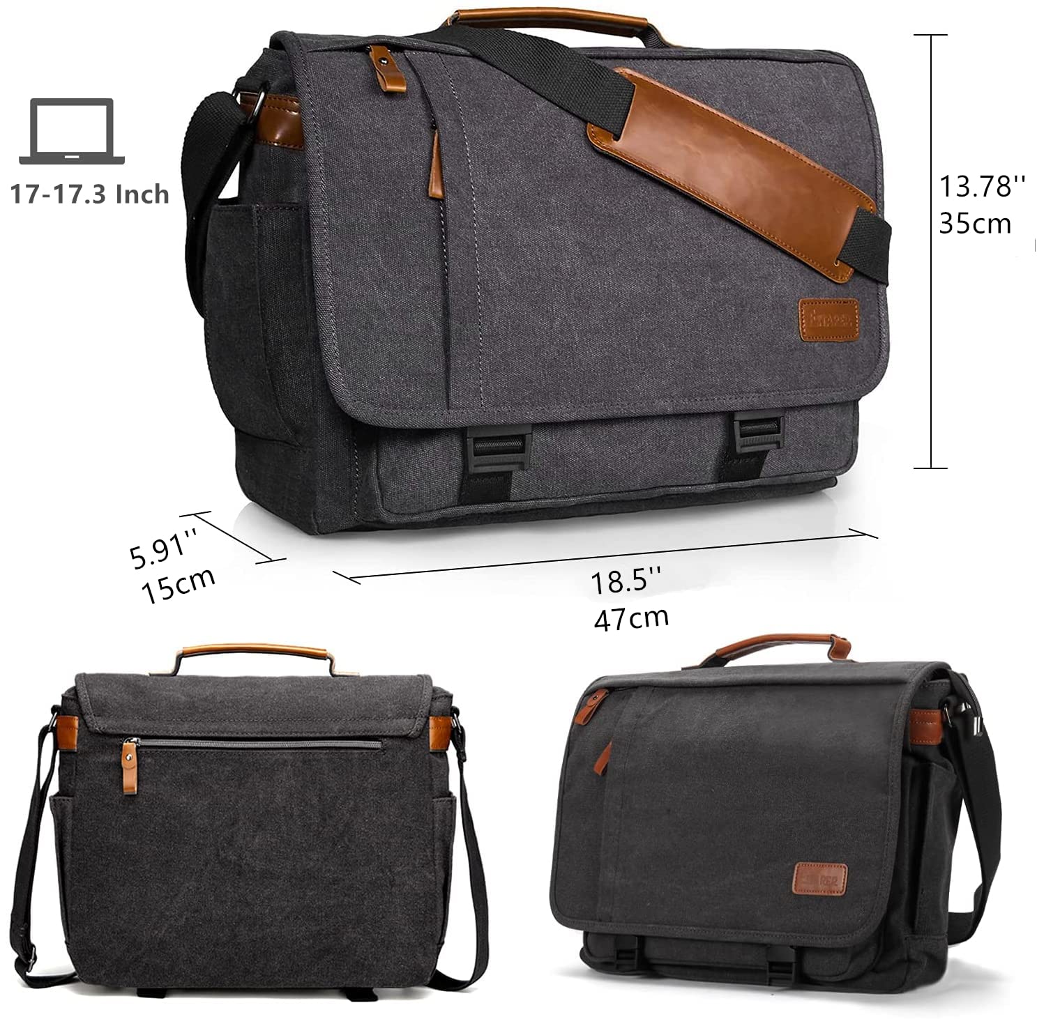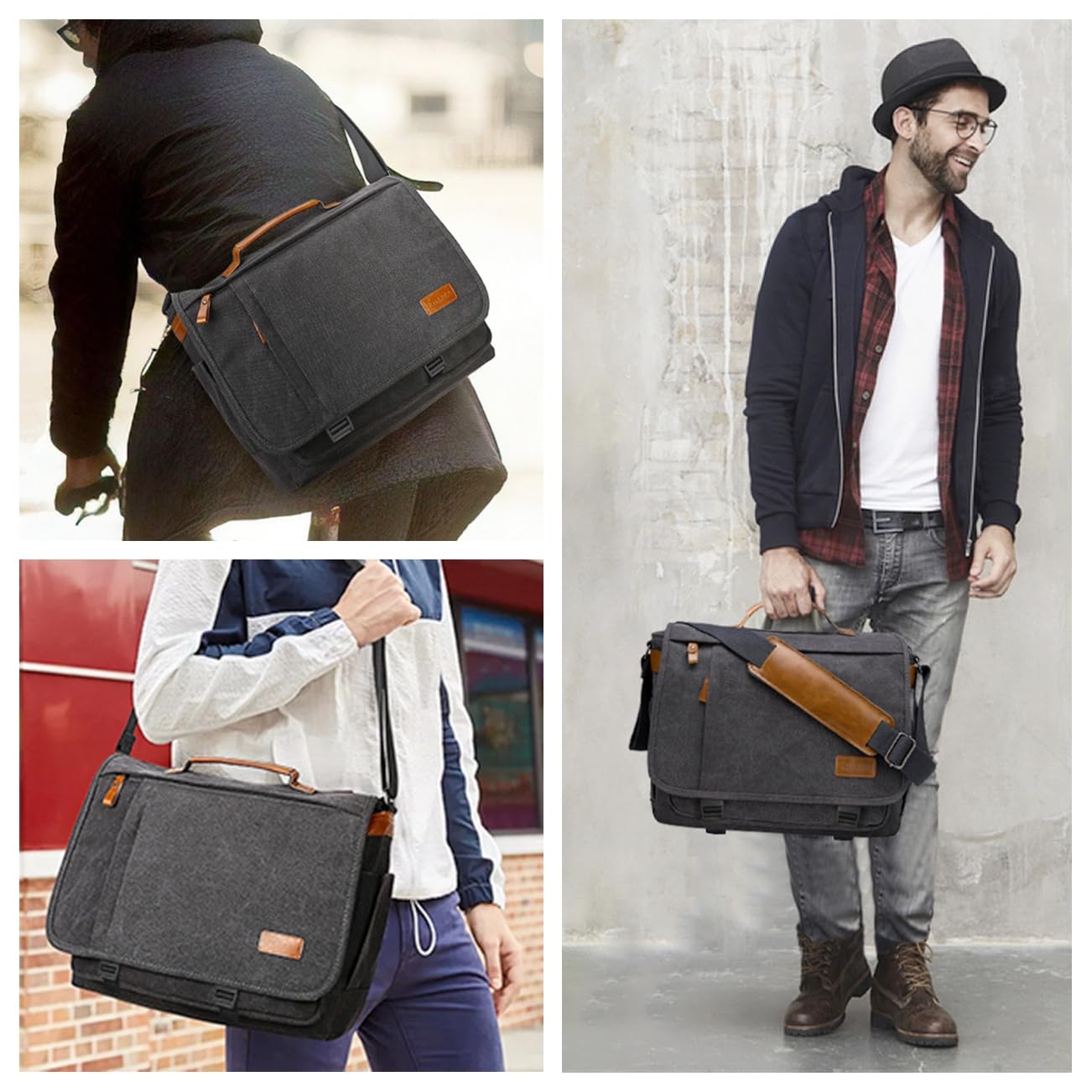 HIGH QUALITY MATERIAL: Messenger bag made of water-resistant canvas, keeps your laptop and other stuffs from rain & snow. All zippers are more durable and smooth, not stuck in the fabric.The front flap is equipped with upgraded buckles ensure the bag's safety; Reinforced stitching seams can be used for a longer time, not easy crack.