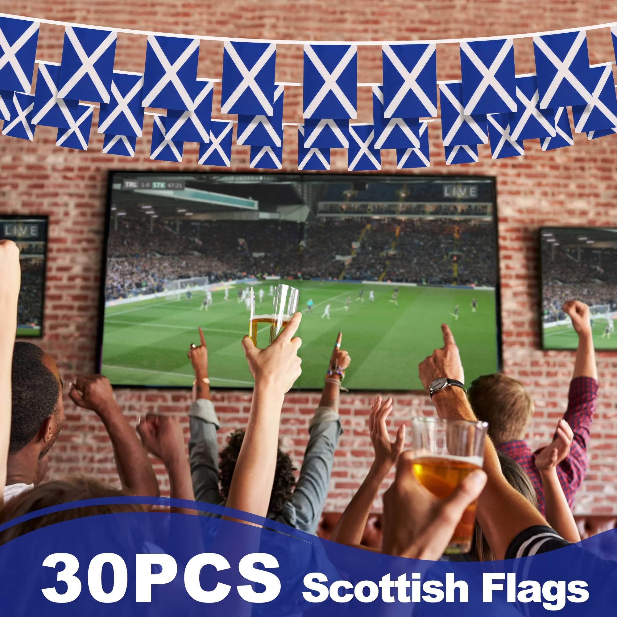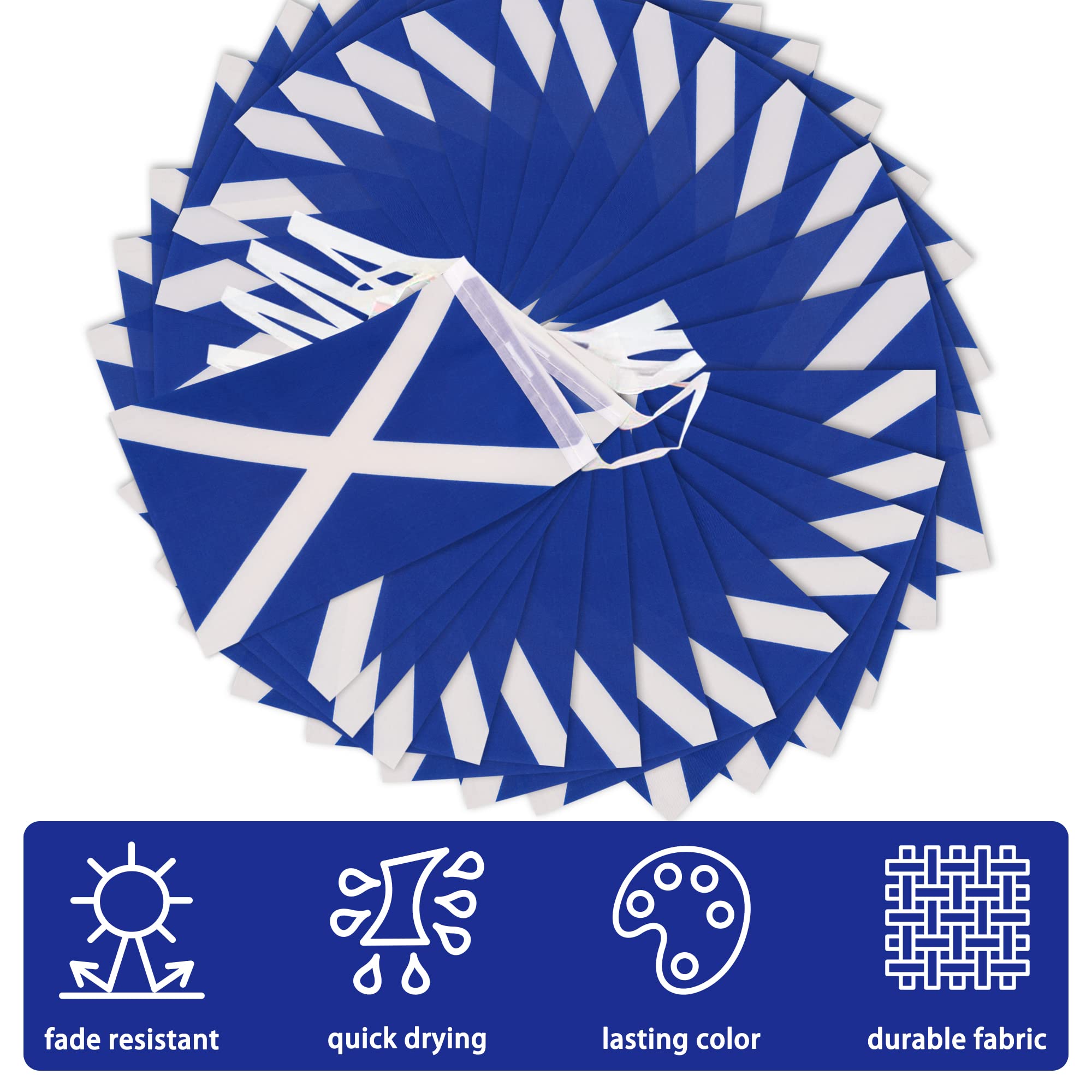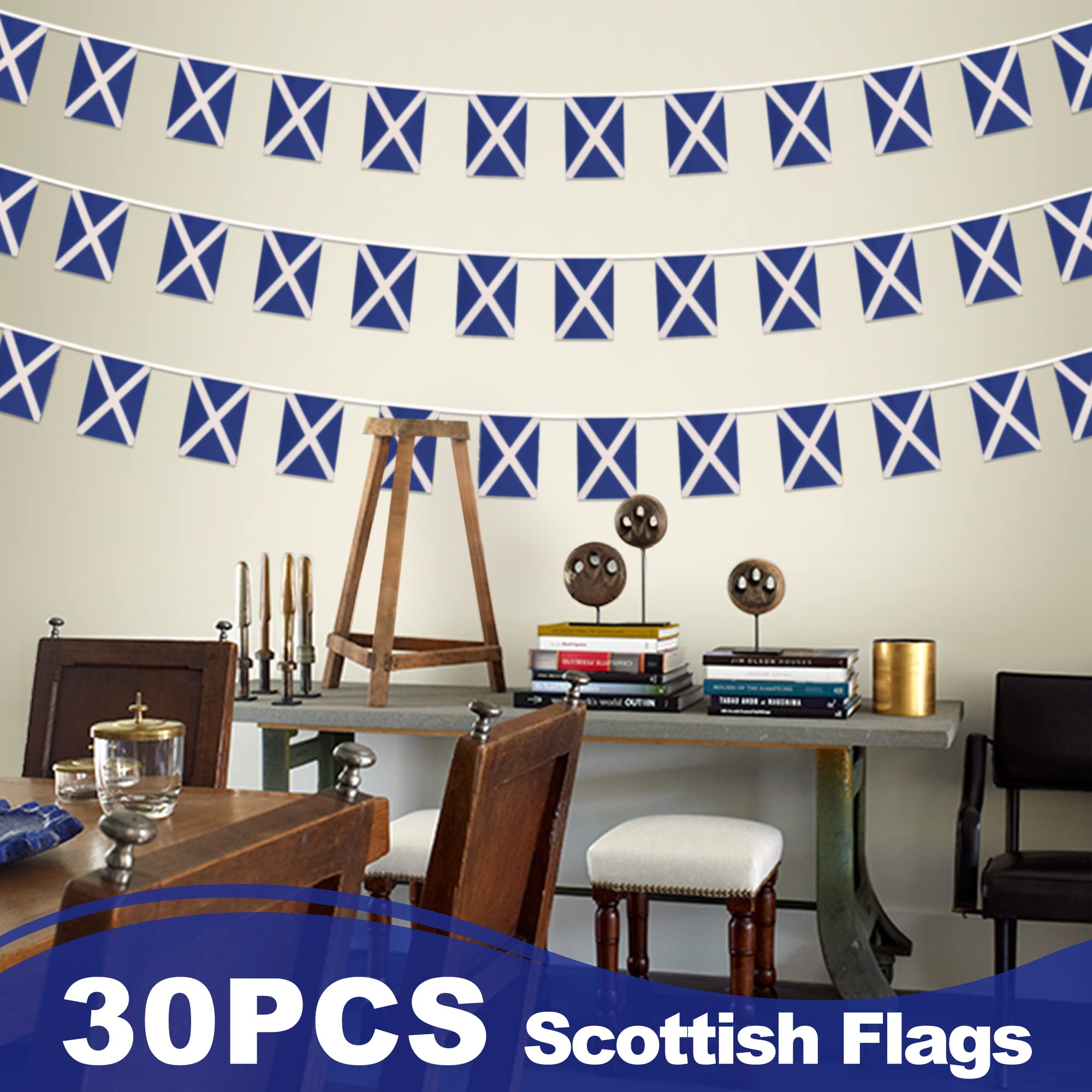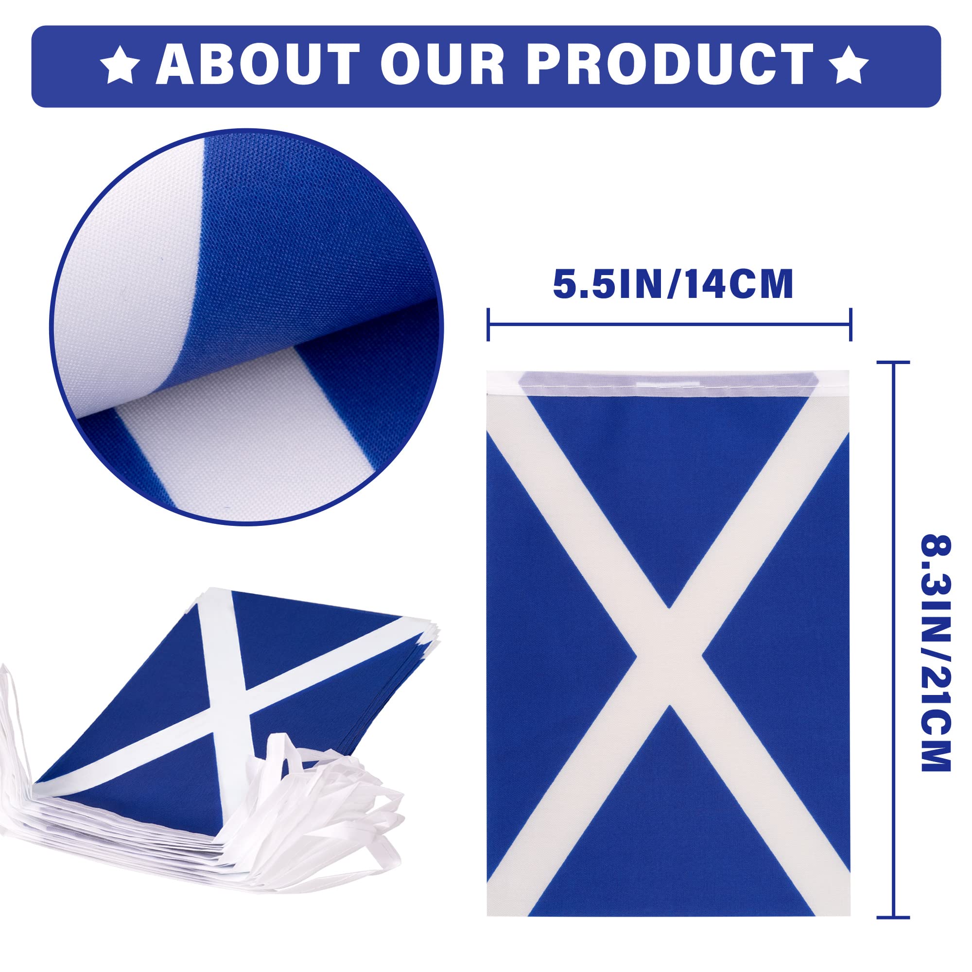 【Specifications】Each string is approximately 33 feet long. Includes 30 pcs Scottish flags. Each flag is approximately 5.5 in wide and 8.2 in long.