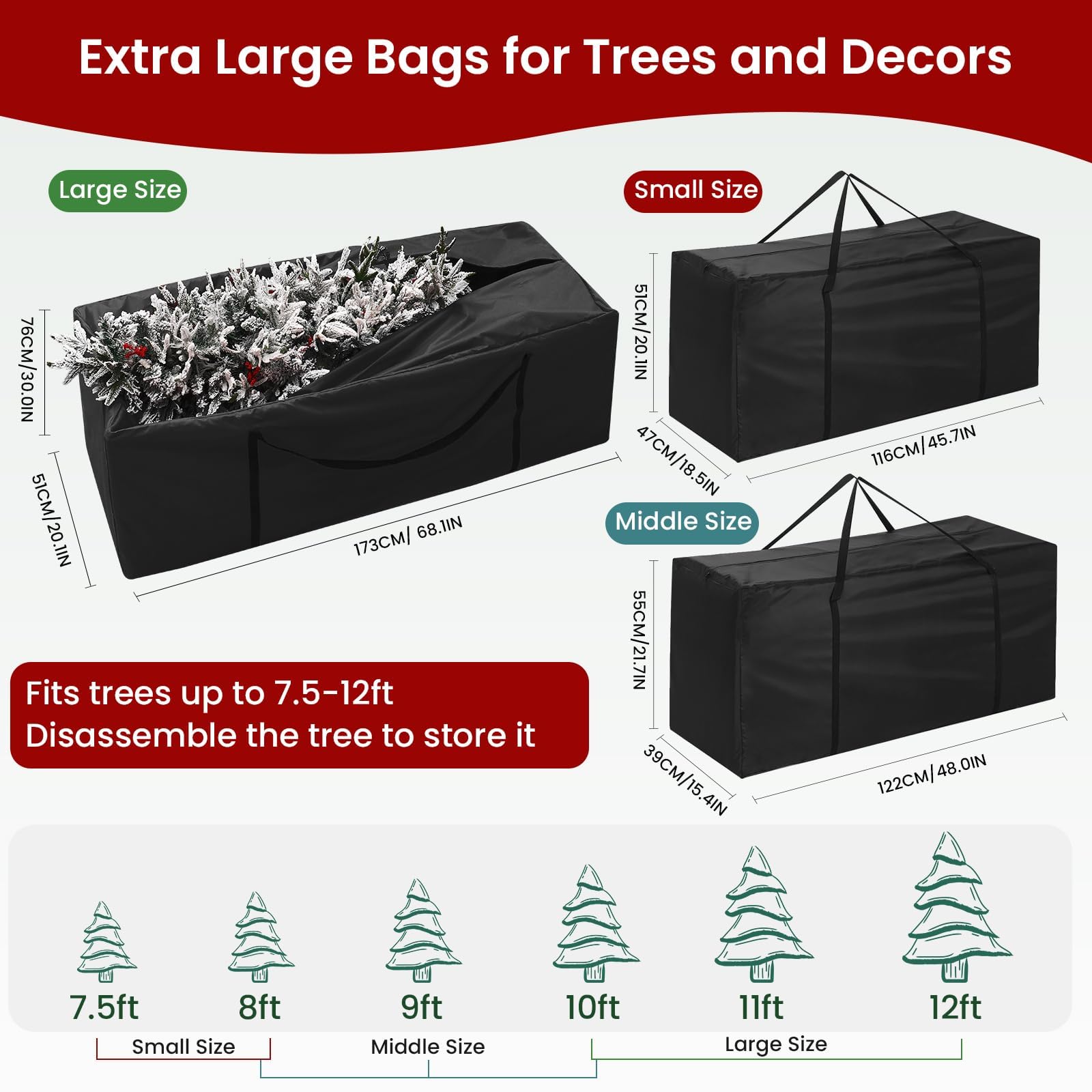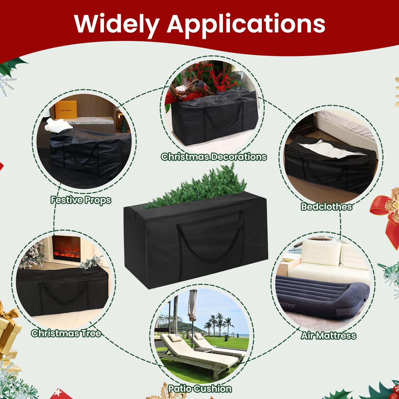 Christmas Tree Storage Bag: Our Artificial Christmas Tree Storage Bag measures 68x30x20 inches (L x W x H) and can be used to store a 9-12 foot Christmas tree, and other Christmas decorations, 12-foot skeletons, home storage, indoor-outdoor furniture cushion storage and more