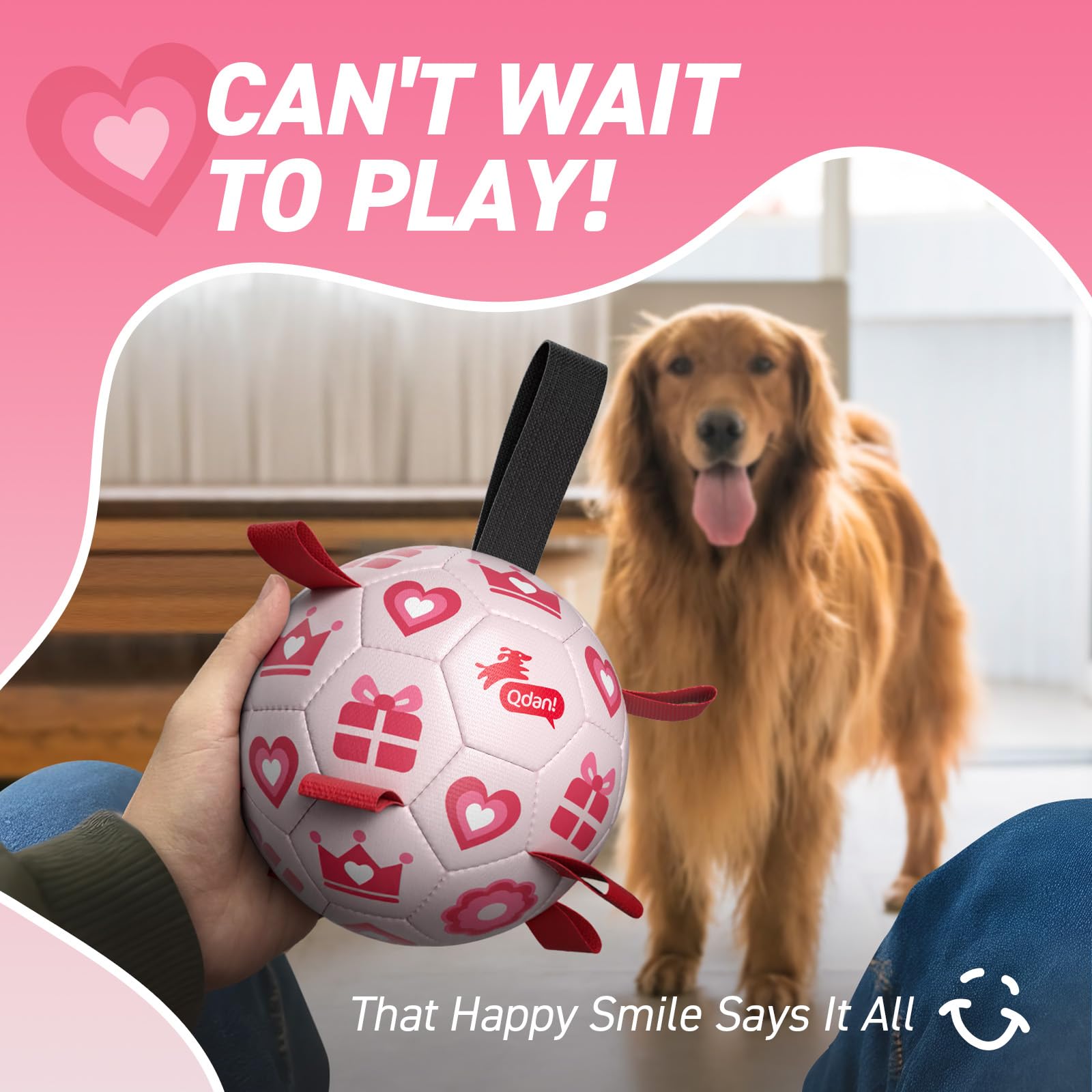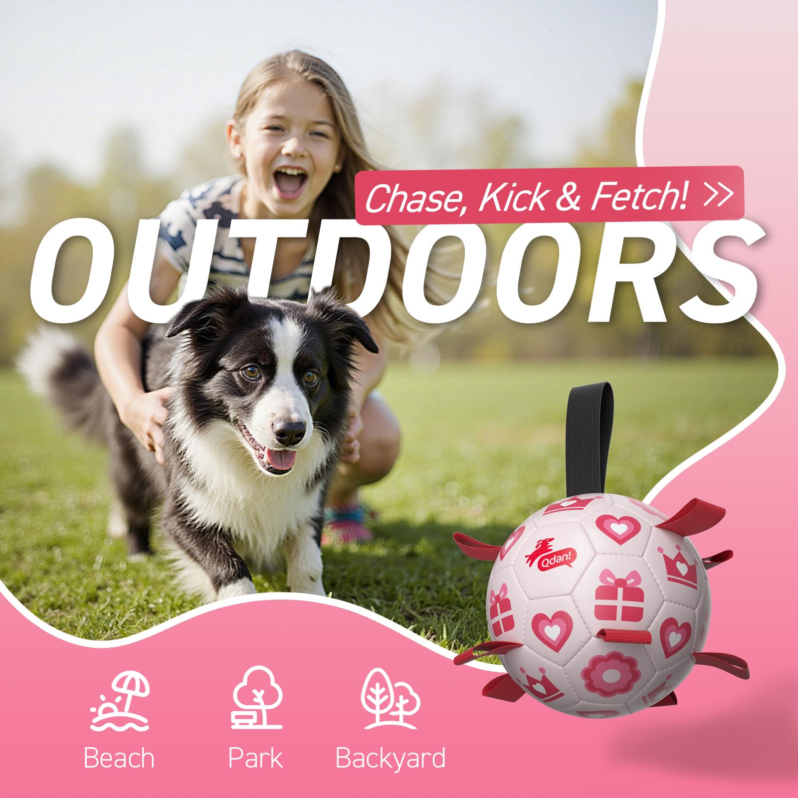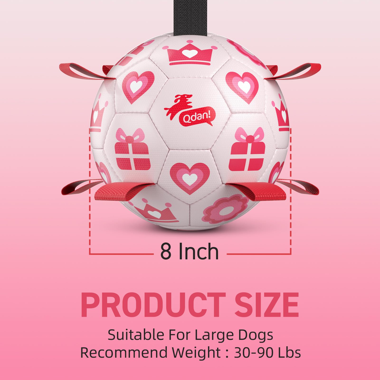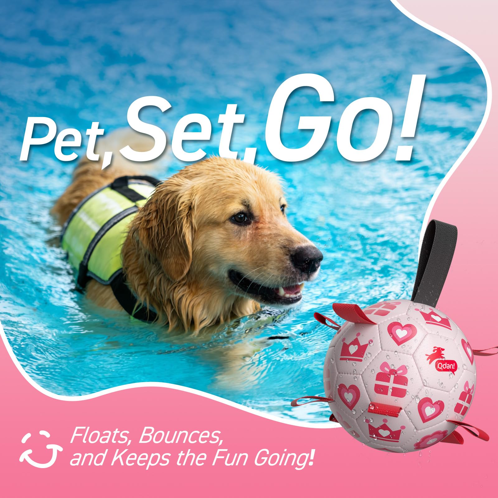 Ultra Bouncing Ball for Water Play. Adopted the lightweight, buoyant design, QDAN soccer ball for dogs can beplayed in the pool, lake and beach as well. The straps dog soccer ball is meant to keep your dog entertained, help human beings and dogs stay engaged.