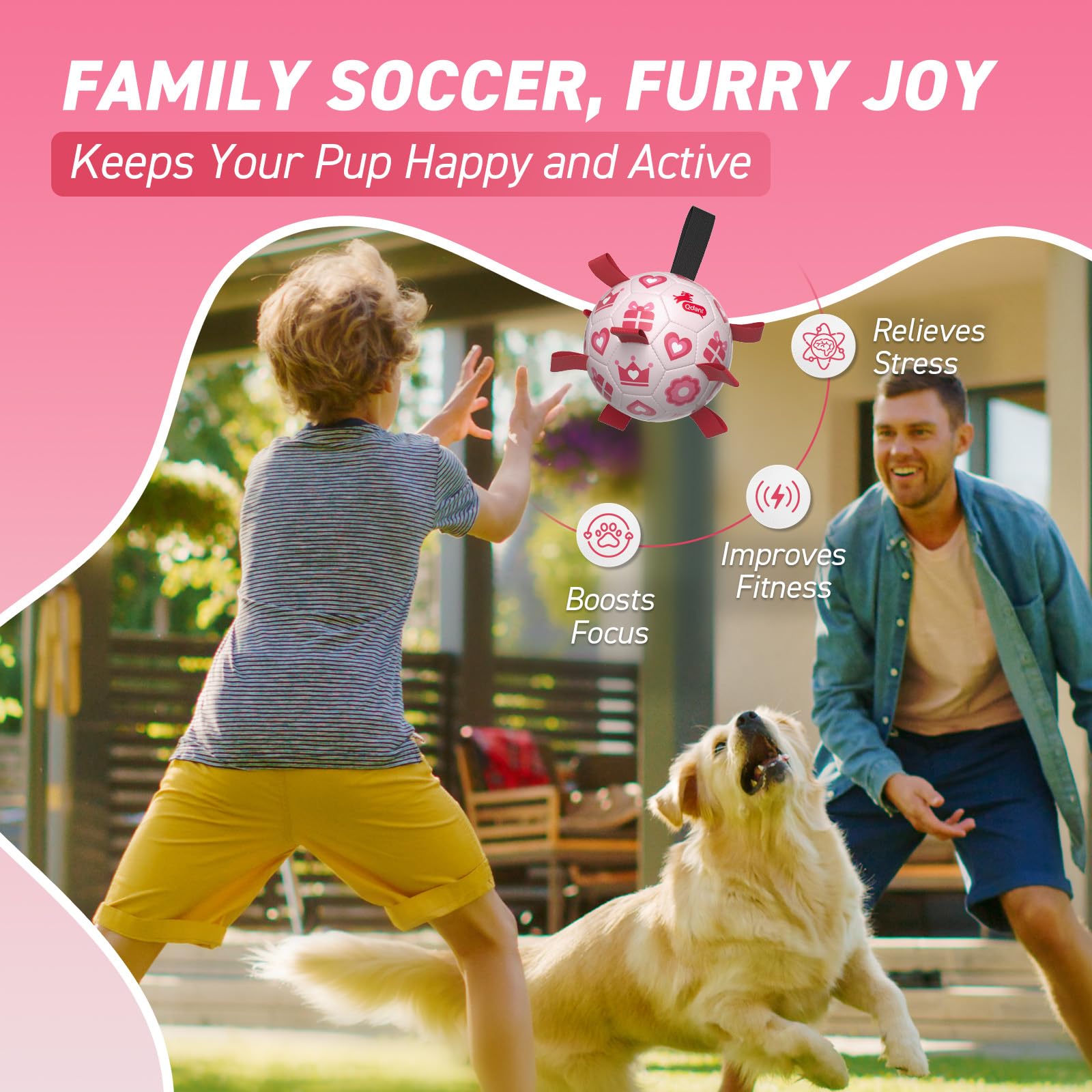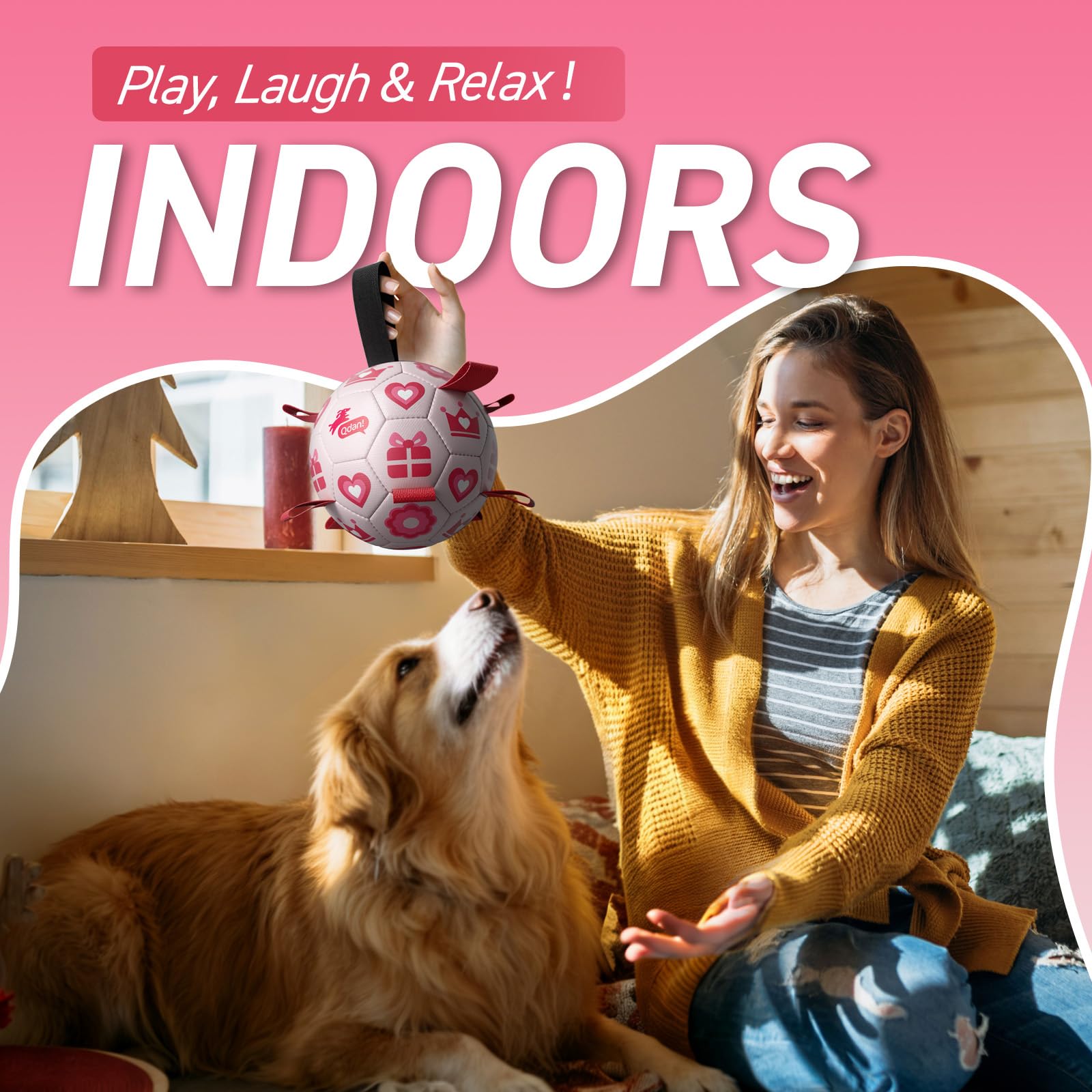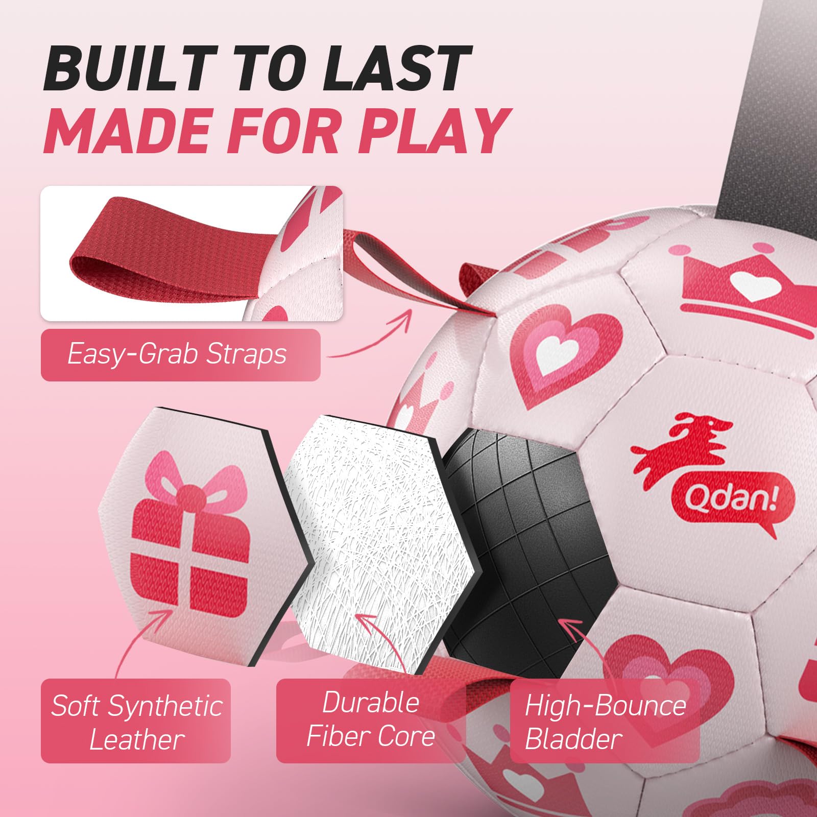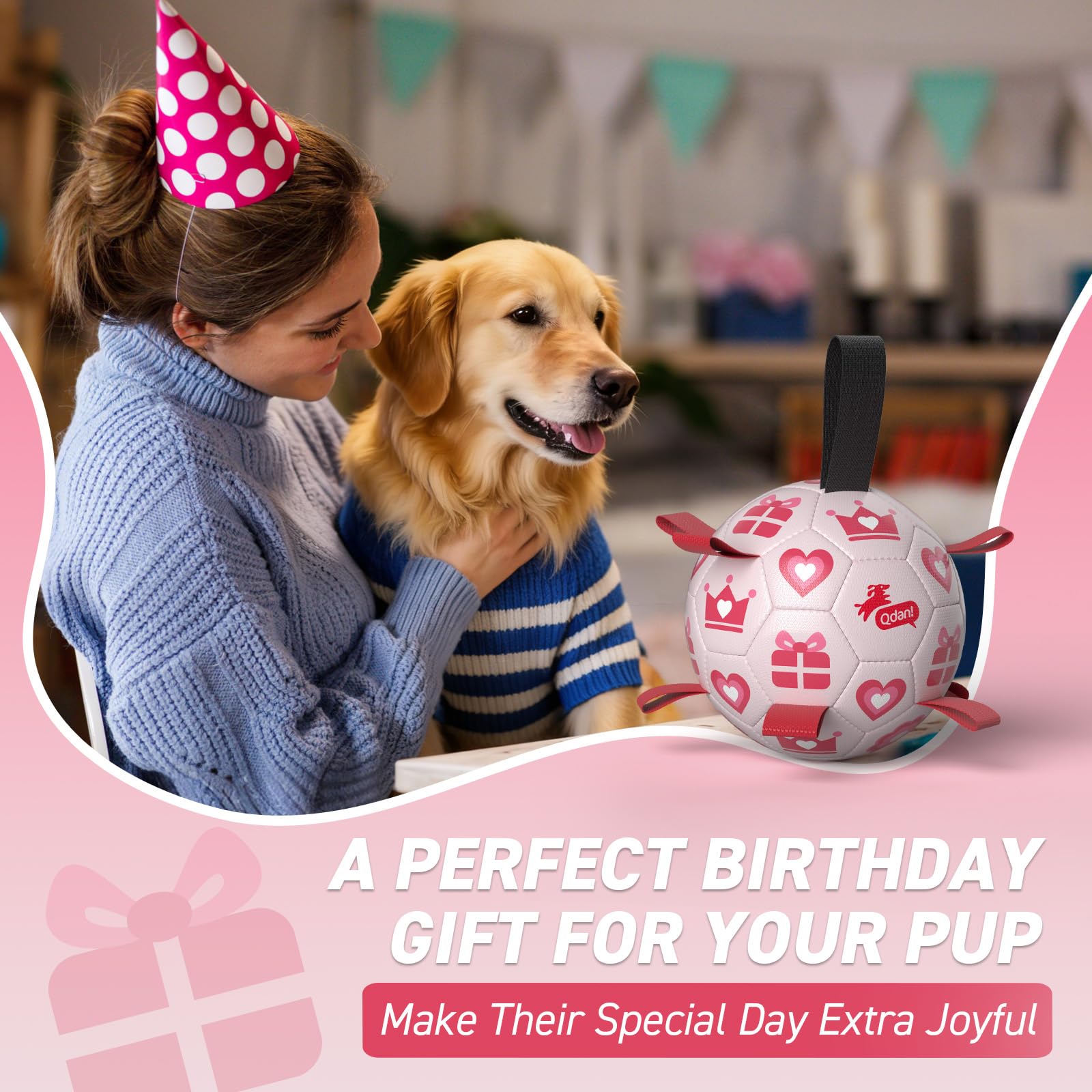 Ultra Bouncing Ball for Water Play. Adopted the lightweight, buoyant design, QDAN soccer ball for dogs can beplayed in the pool, lake and beach as well. The straps dog soccer ball is meant to keep your dog entertained, help human beings and dogs stay engaged.