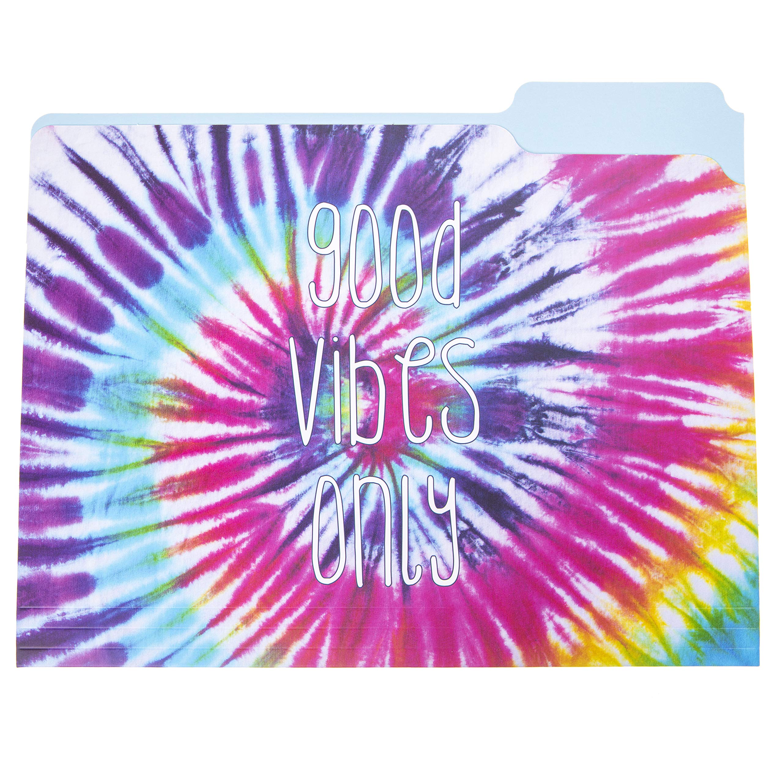 TIE DYE FILE FOLDER SET: Graphique's Tie Dye File Folder Set includes 9 folders with 3 different tie-dye designs set on different colored backgrounds. This sleek set is designed to be as business professional as it is stylish and expressive.