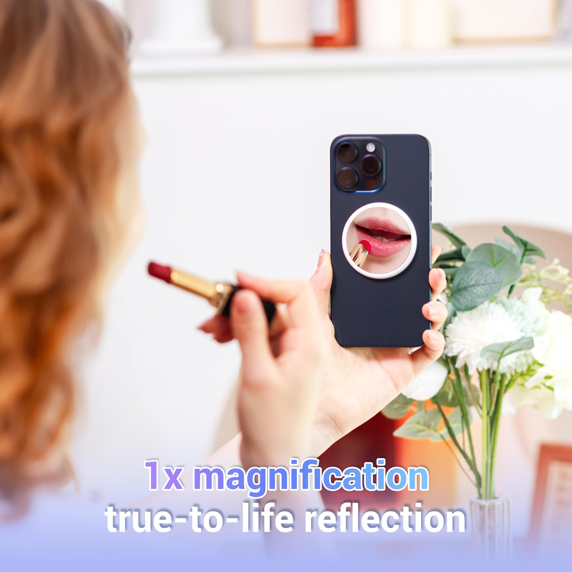 【1X Magnifying Phone Mirror】The magnetic phone makeup mirror is suitable for entire face makeup. It provides a clearly view and true color details for looking charming.