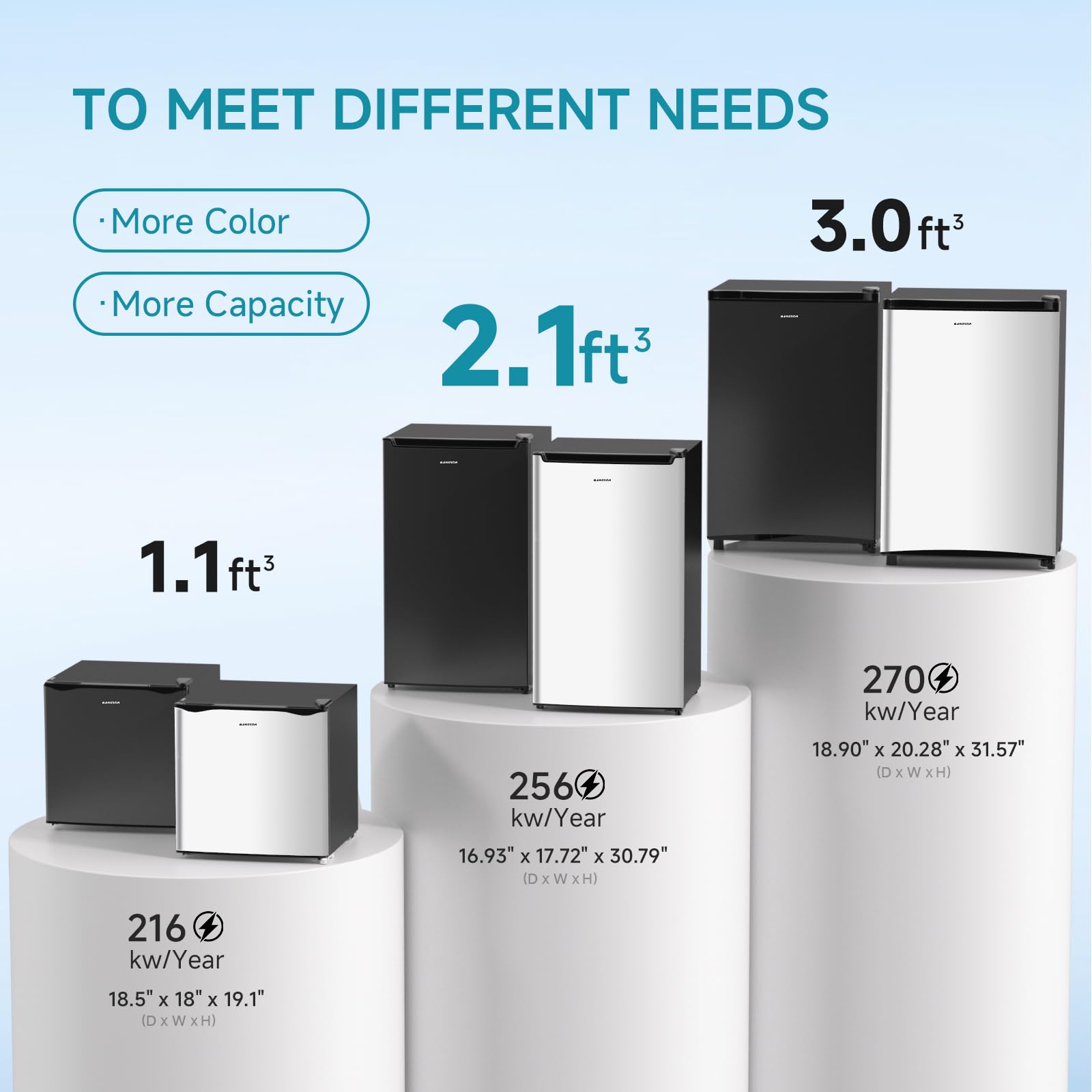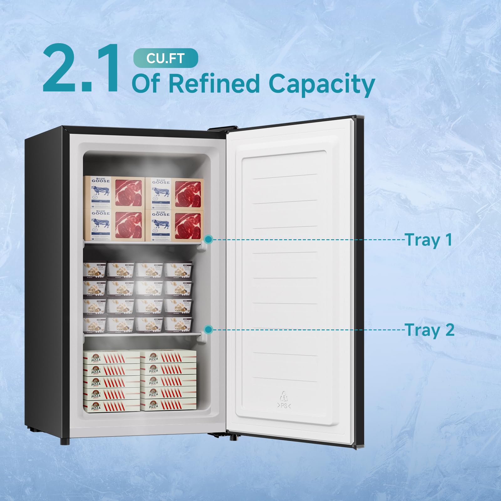 Compact Freezer Dimension: The 2.1 cubic feet freezer, measuring 17.72 inches W, 16.93 inches D, and 30.79 inches H, is designed to save space while conveniently storing items. The compact size is ideal for 2–3 families or dorm workplaces. You can remove the inner shelf based on the height of the meal.