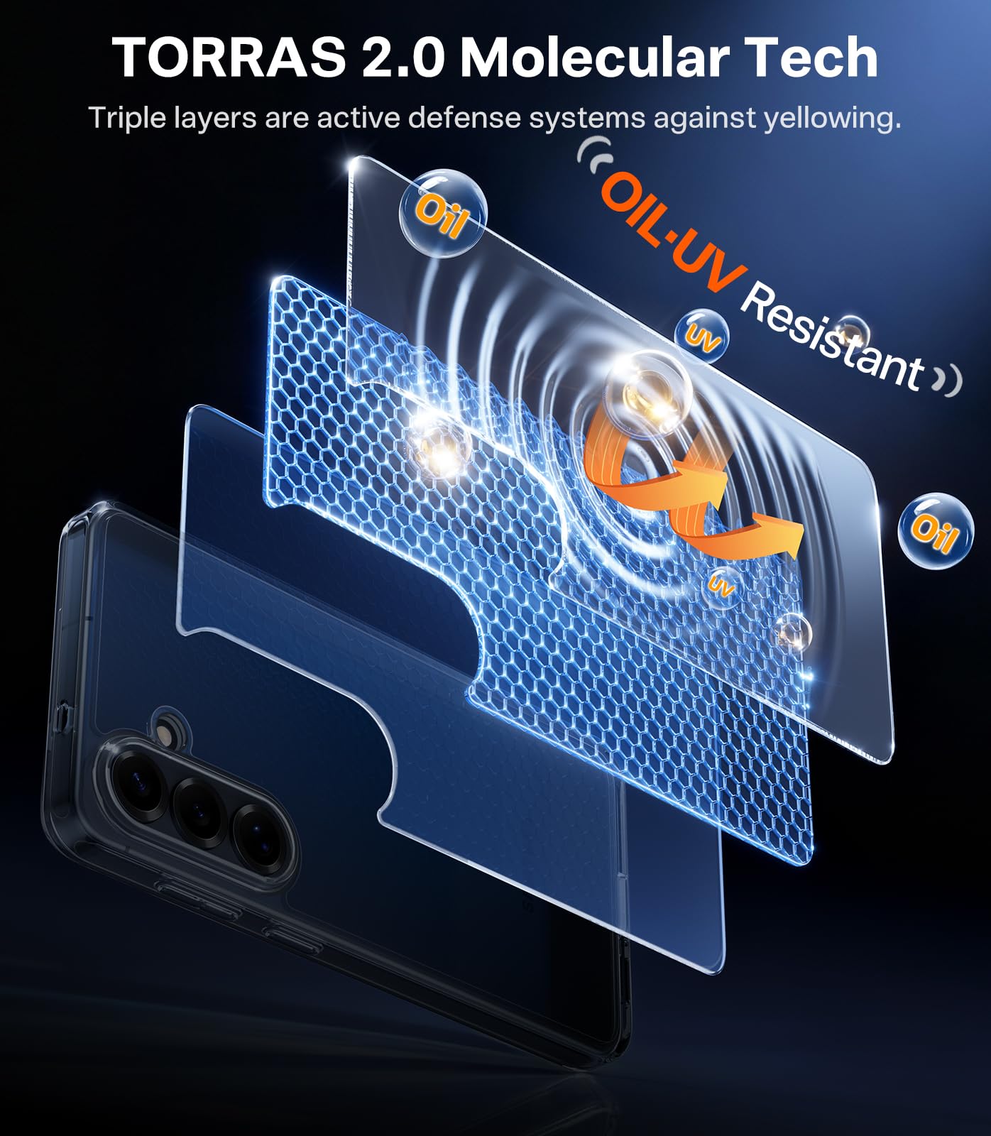 [Diamond Clear Anti-Yellowing Shield] Stop replacing cases monthly. This clear galaxy s26 case builds an invisible anti-yellowing shield. Powered by Blue-Molecule and Nano-Clean Tech, it acts like a 24/7 sunblock to block UV rays and repel hand sweat & oil. The transparent cover stays diamond-clear for over 365 days, keeping the s26 clear case always looks like day one.