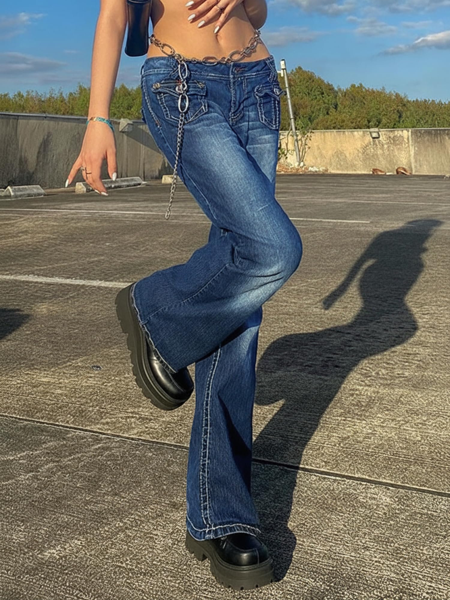 Made of high-quality denim fabrics and super soft fabrics, softness, breathability, elasticity and good hanging sense. This flare jeans is comfortable, breathable, and highlights your body