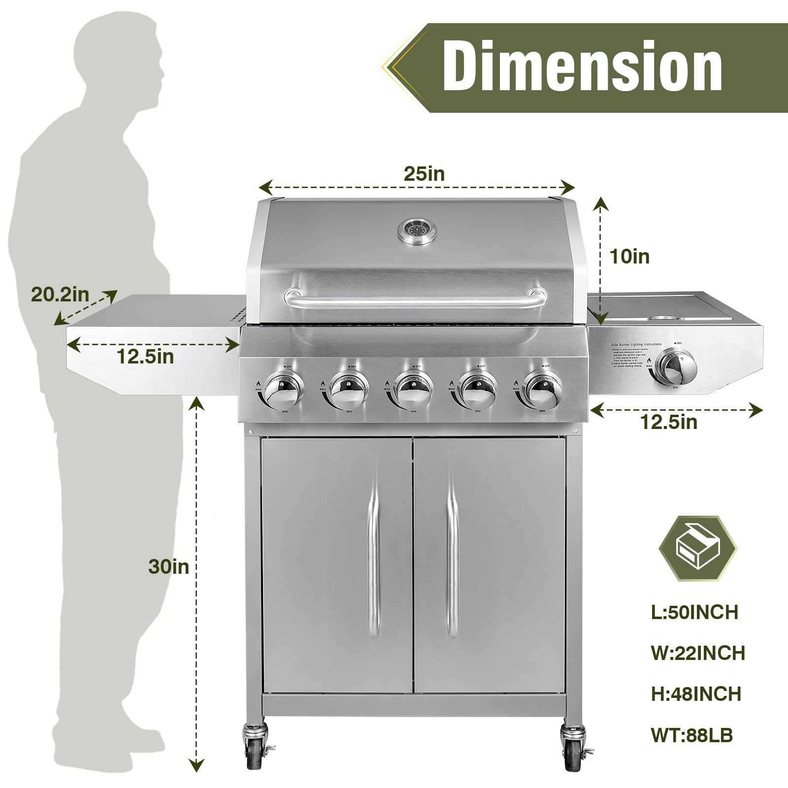 🔥 【All-Weather Performance】 Rain or shine, enjoy year-round grilling. Weather-resistant design withstands high heat and humidity. Bonus storage cabinet holds propane tanks, tools, and accessories.