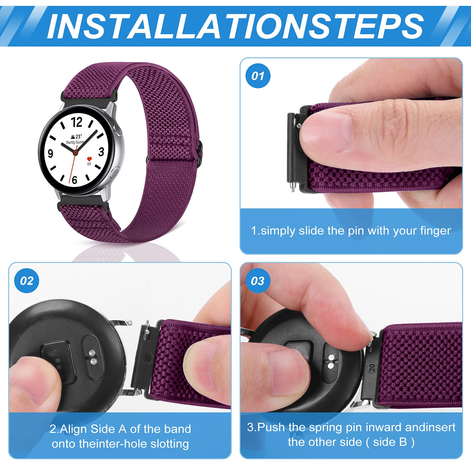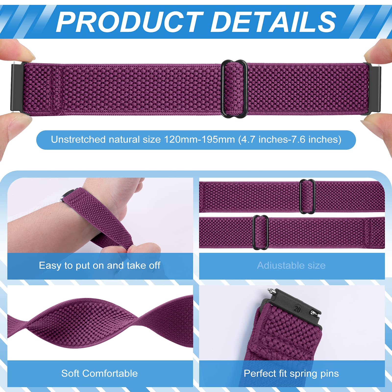 【Stretchy & Adjustable】 - 16mm 18mm 19mm 20mm 22mm 24mm elastic watch band gives a nice snug fit and perfectly match with your wrist.Easily slide adjust to fit your wrist, the innovative buckle makes the band length adjustable from 5.5"-9.8" (140mm-250mm).