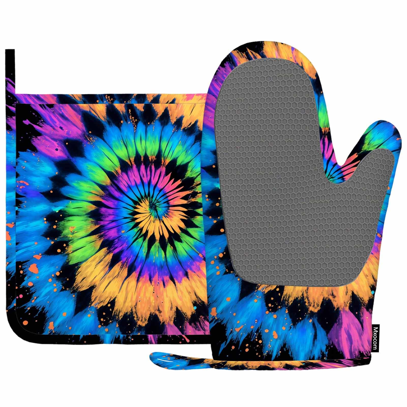 【2 PCS KITCHEN ACCESSORY SETS】Our Mxocom oven mitts and pot holders sets including 1 pcs non-slip kitchen silicone right hand oven gloves (7 x 11 in), and 1 pcs pot holders (8 x 8 in), Perfect for holding hot pots, pans, plates, bowls, and trays.