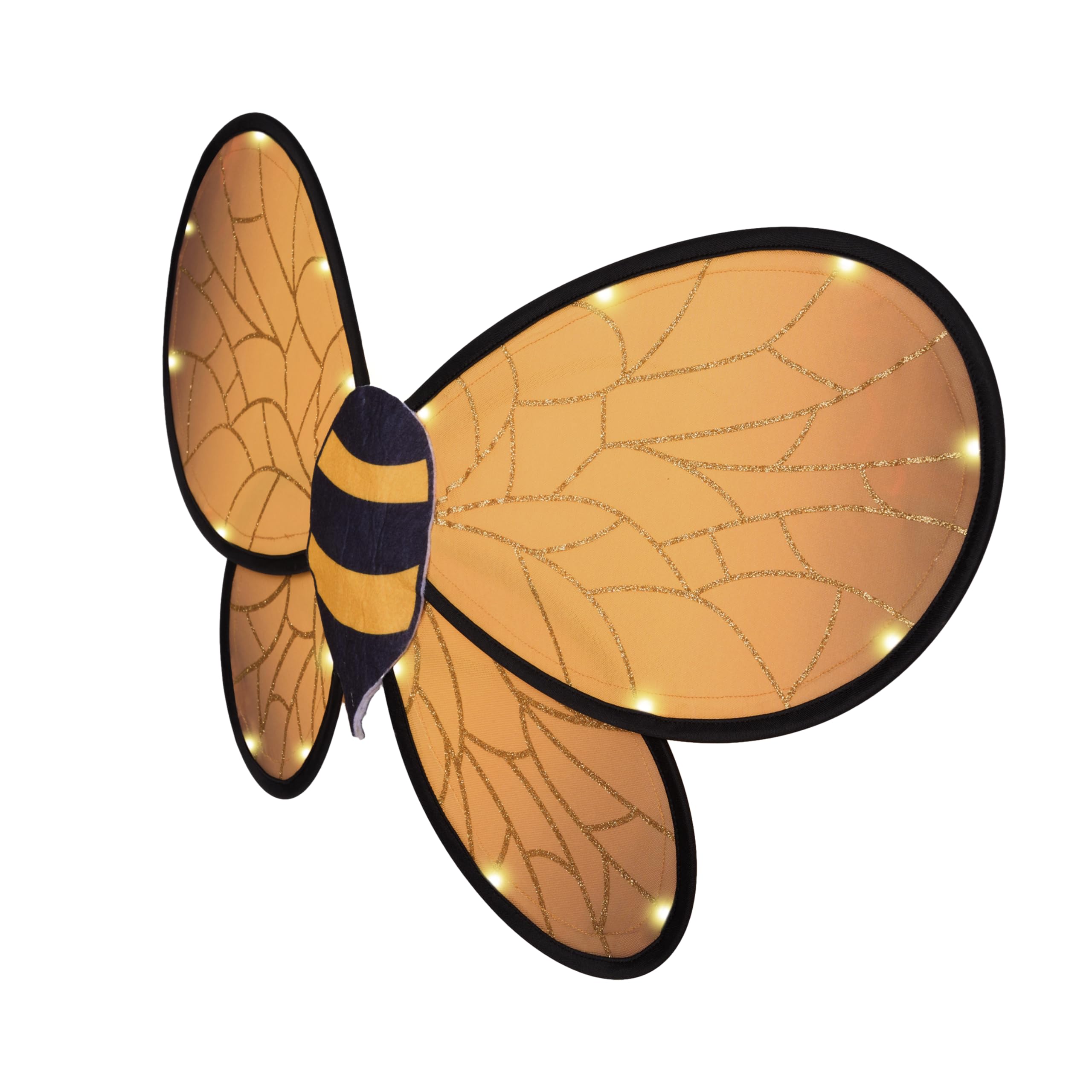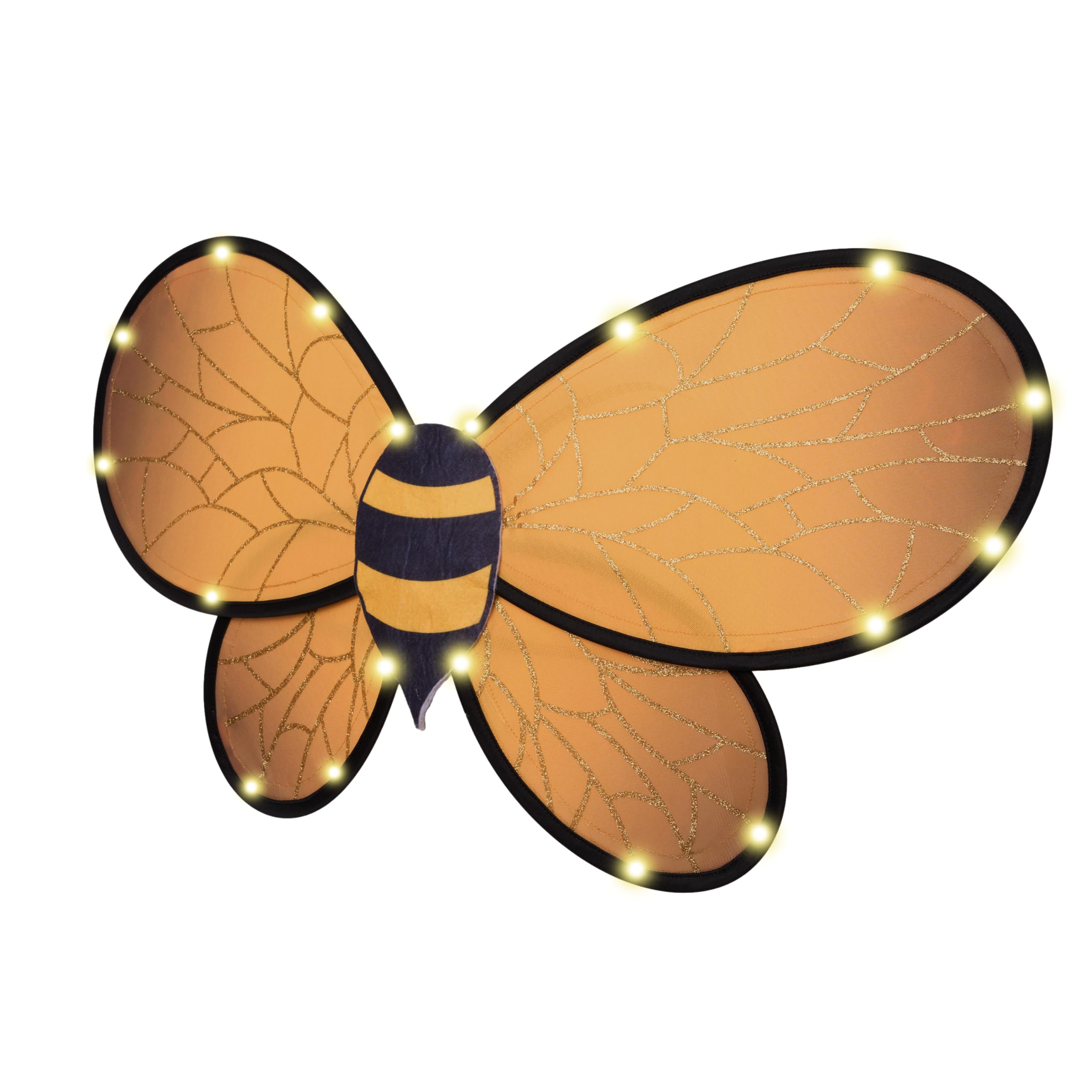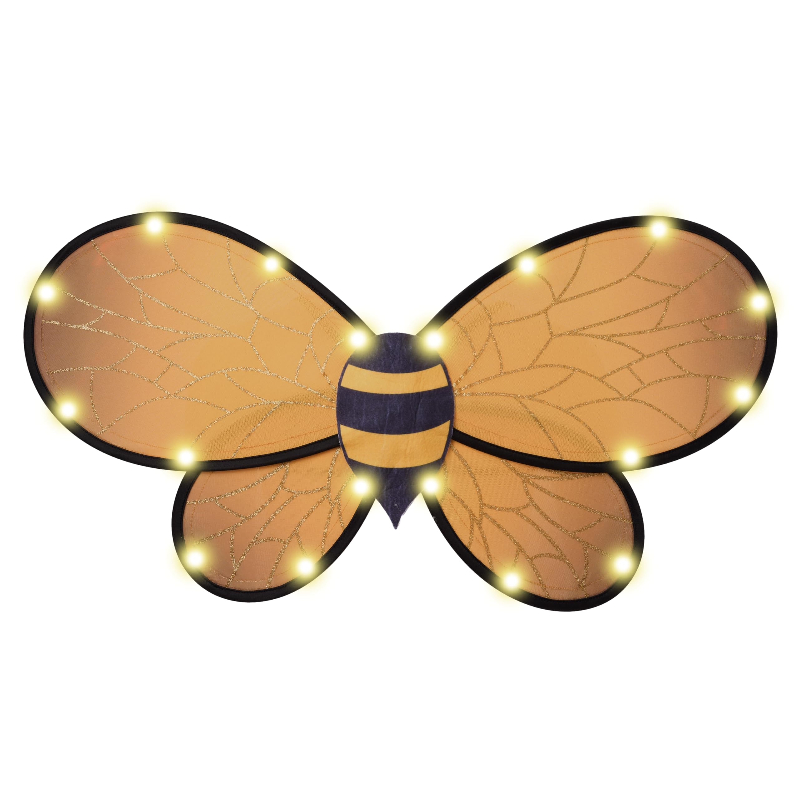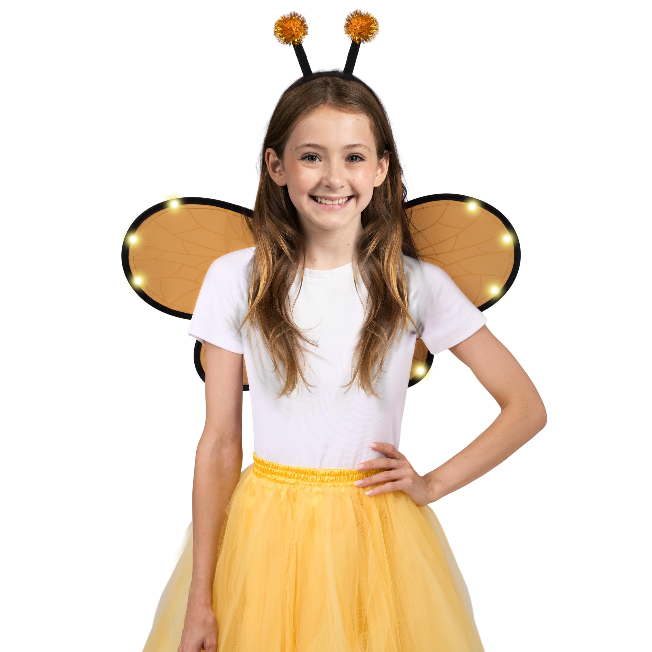 SUPER VALUE PACK: This black yellow bee costume set includes a pair of wings with built-in lights (batteries included) and a matching bee antenna headband, which are designed to fit women and girls of all sizes. Transform into a buzzing and radiant Bee with this captivating outfit.