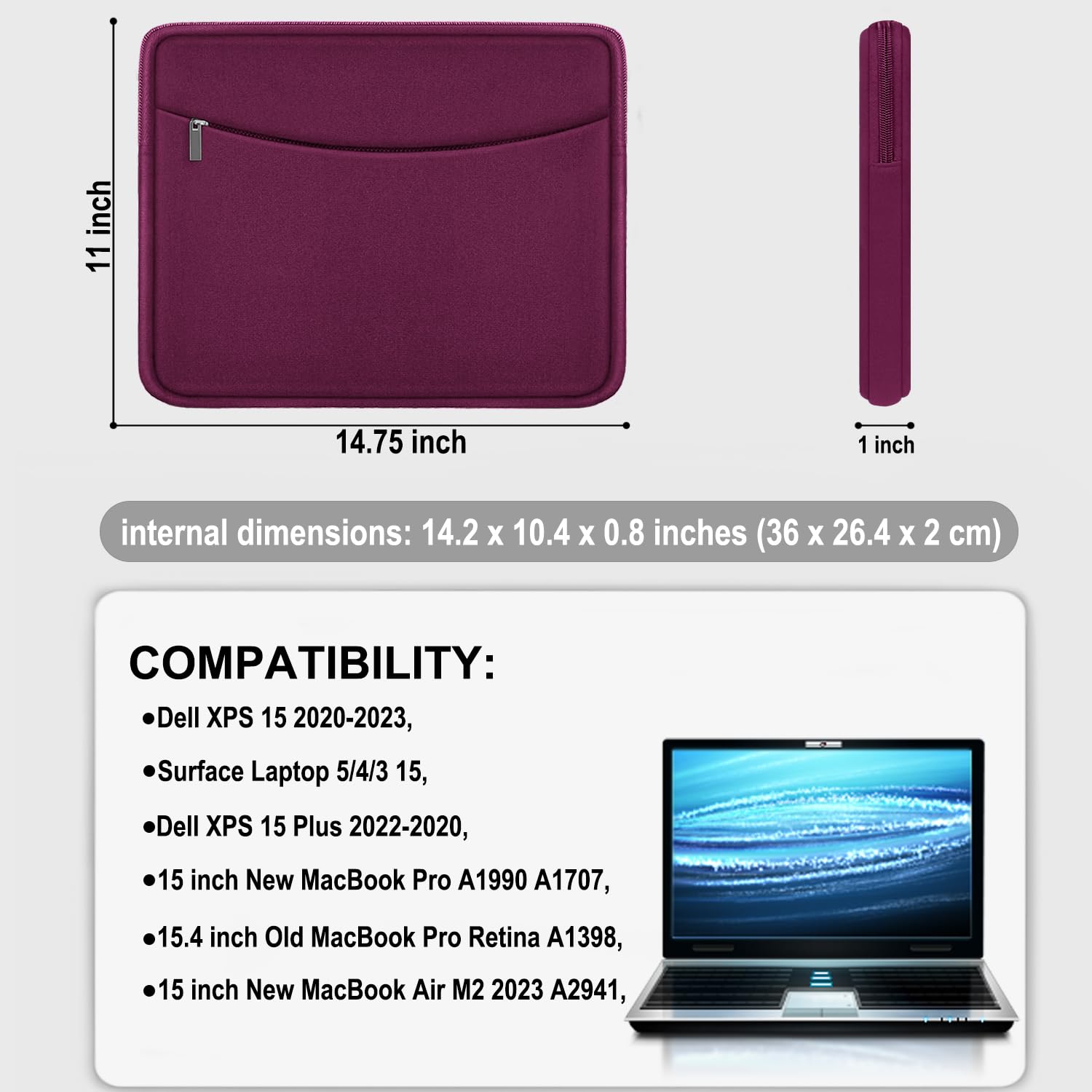 【Compatibility】External dimensions: 14.2 x 10.1x 1 inches, internal dimensions: 13.7 x 9.5 x 0.8 inches; Compatible with MacBook Pro 14", MacBook Air 13", 14" laptops, including Acer, Asus, Dell, Lenovo, HP, Toshiba, Samsung, and most -13.3"-14" laptops/chromebooks/ultrabooks/netbooks.