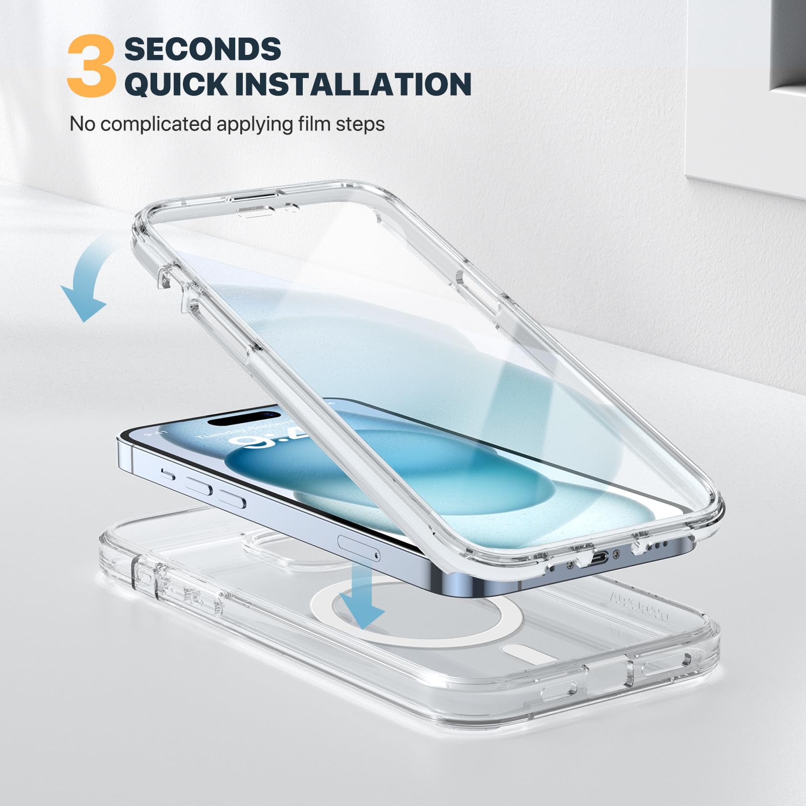 【360 Degree Full Body Rugged Protection】 Dual layer provides 360°full body rugged protection. Soft TPU shock absorption and raised 4 corners surround your phone and protect it from accidental drops and falls. With hardness tempered glass camera lens protector designed for iPhone 15 Plus to protect your camera and brings you the original of beauty to every photo and video.