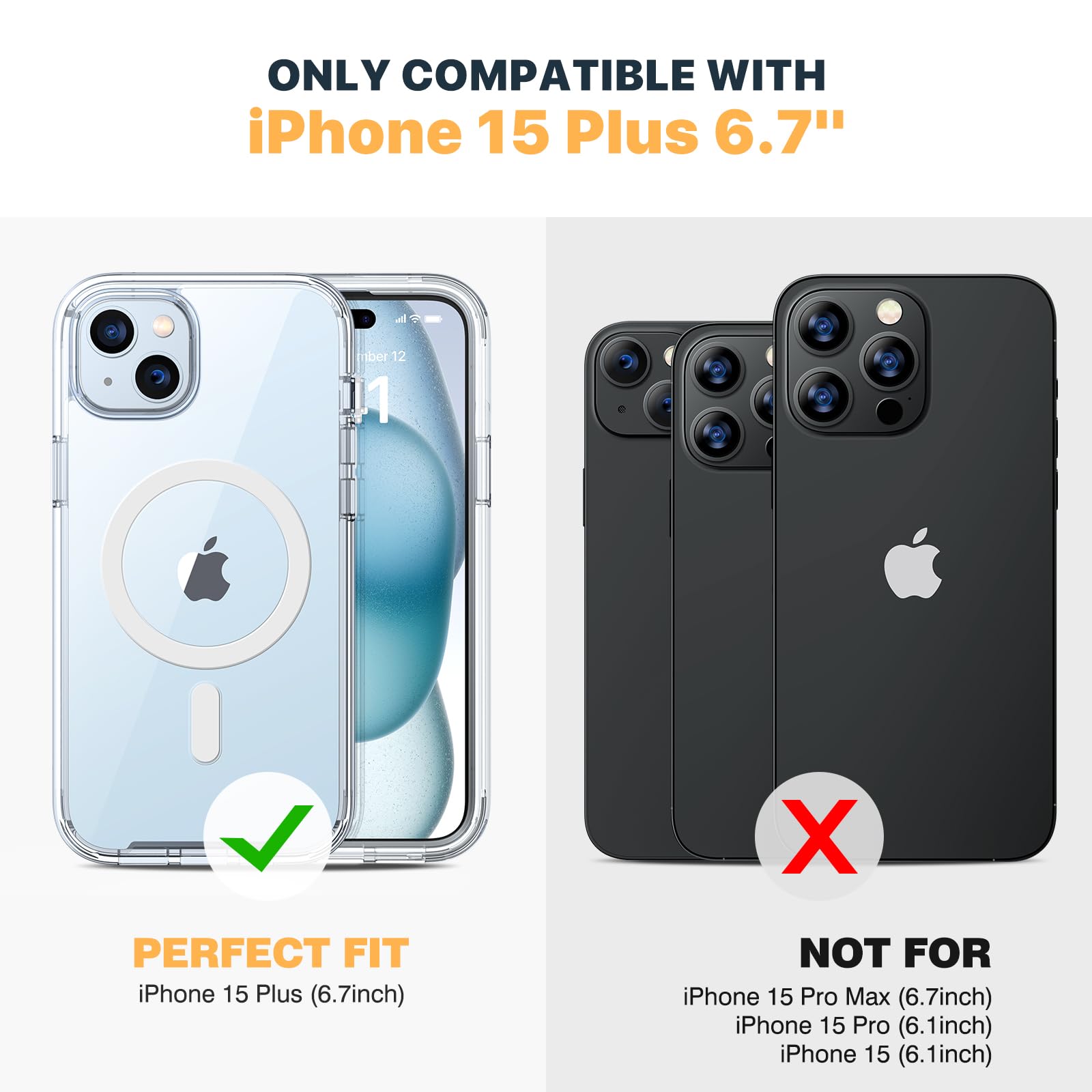 Specification: - Compatibility: Compatible with iPhone 15 Plus - 6.7 inch ONLY - Material: TPU+PC+PET - Updated TPU Bumper Thickness: 4.6 mm Package include: 1* iPhone 15 Plus Case 6* User Manual Camera lens protector NOTE: Please remove any screen protector before installing the phone case to avoid influence on touch screen sensitivity and fitting. DIACLARA provide lifetime free return & replacement, please feel free to contact us for any questions.