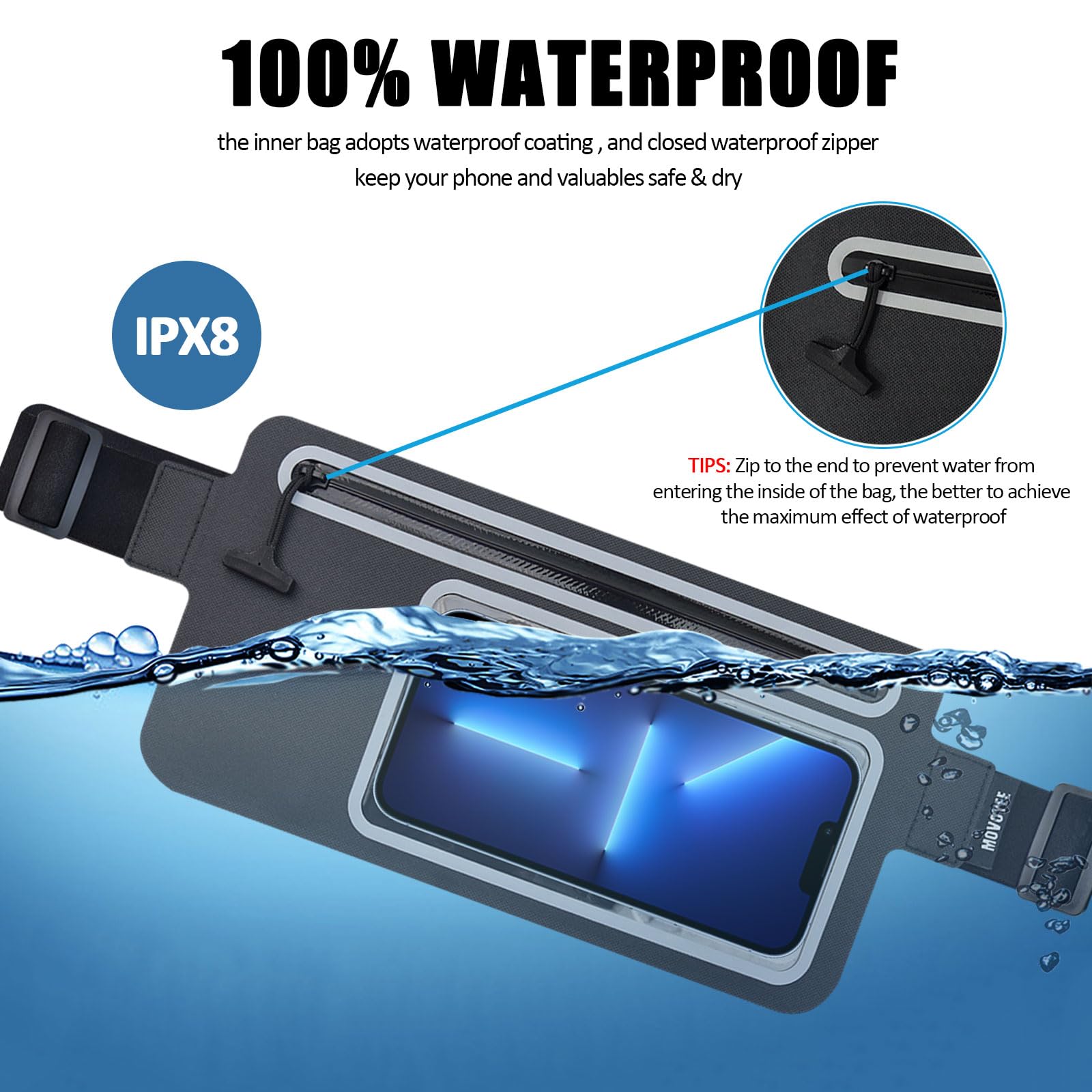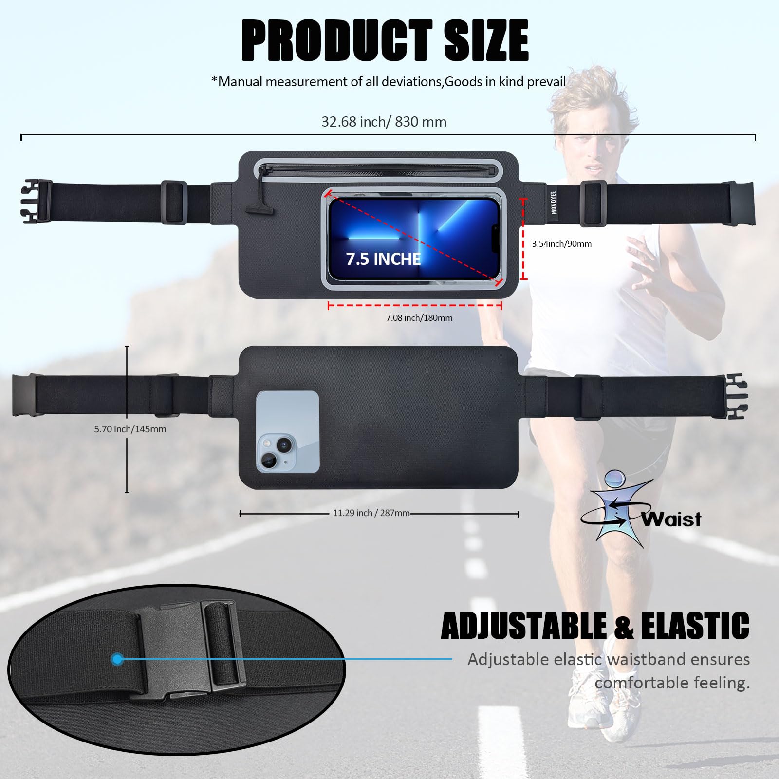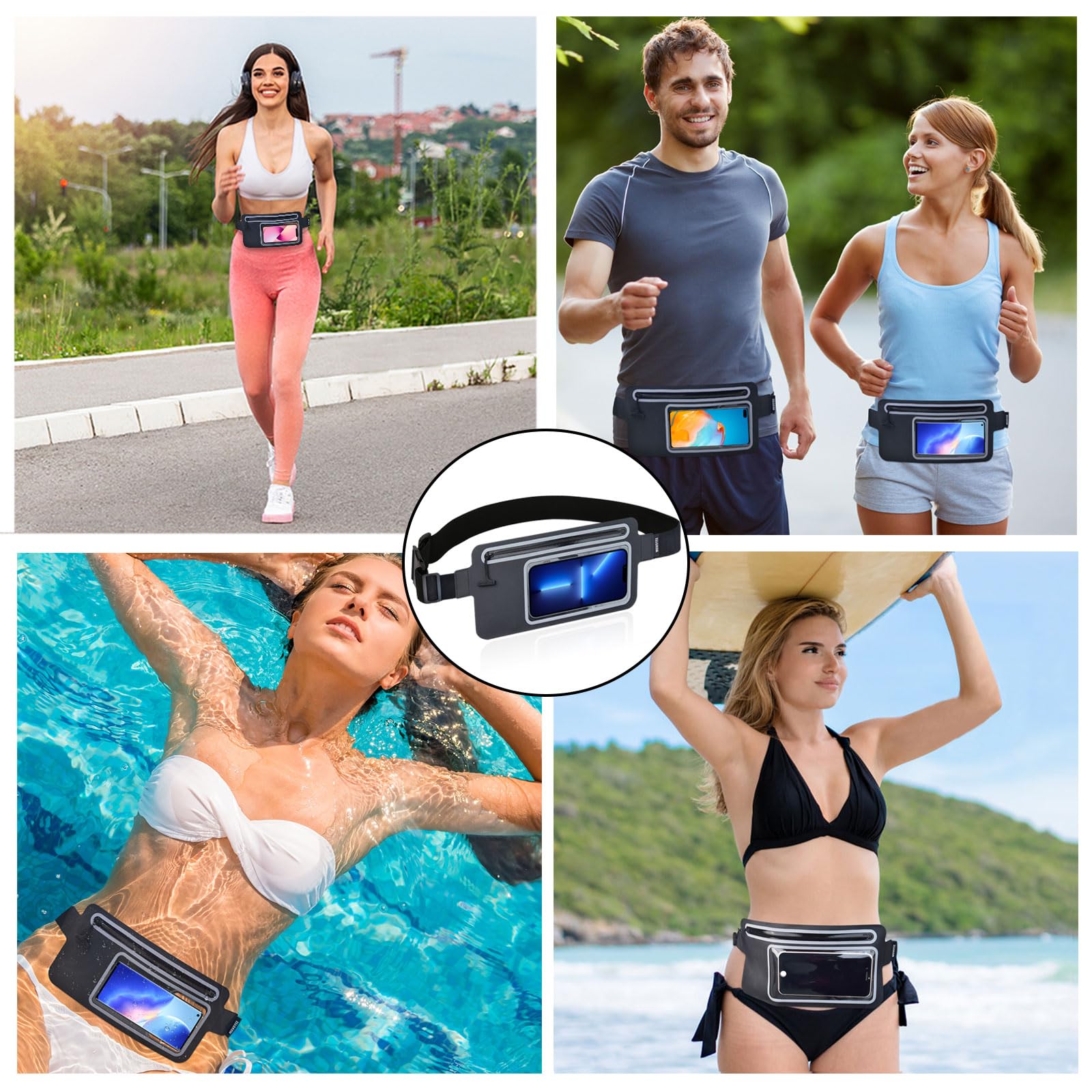 👍【Extra Large Fanny Pack Plus Size Belt Bag with Clear Window to Easily Touch the Screen&Take Photos】Our large belt bag with upgraded plus storage zipper pocket&interlayer to carry cellphone equipment(fit smartphones screen up to 7.2 inches),keys,money,card,passport,accessories carrier vacation must hold.No worries about your valuables getting wet or lost.Waterproof waist pack for men,travel dry bags waterproof fanny pack women for swimming,waterproof running belt for phone fanny pack