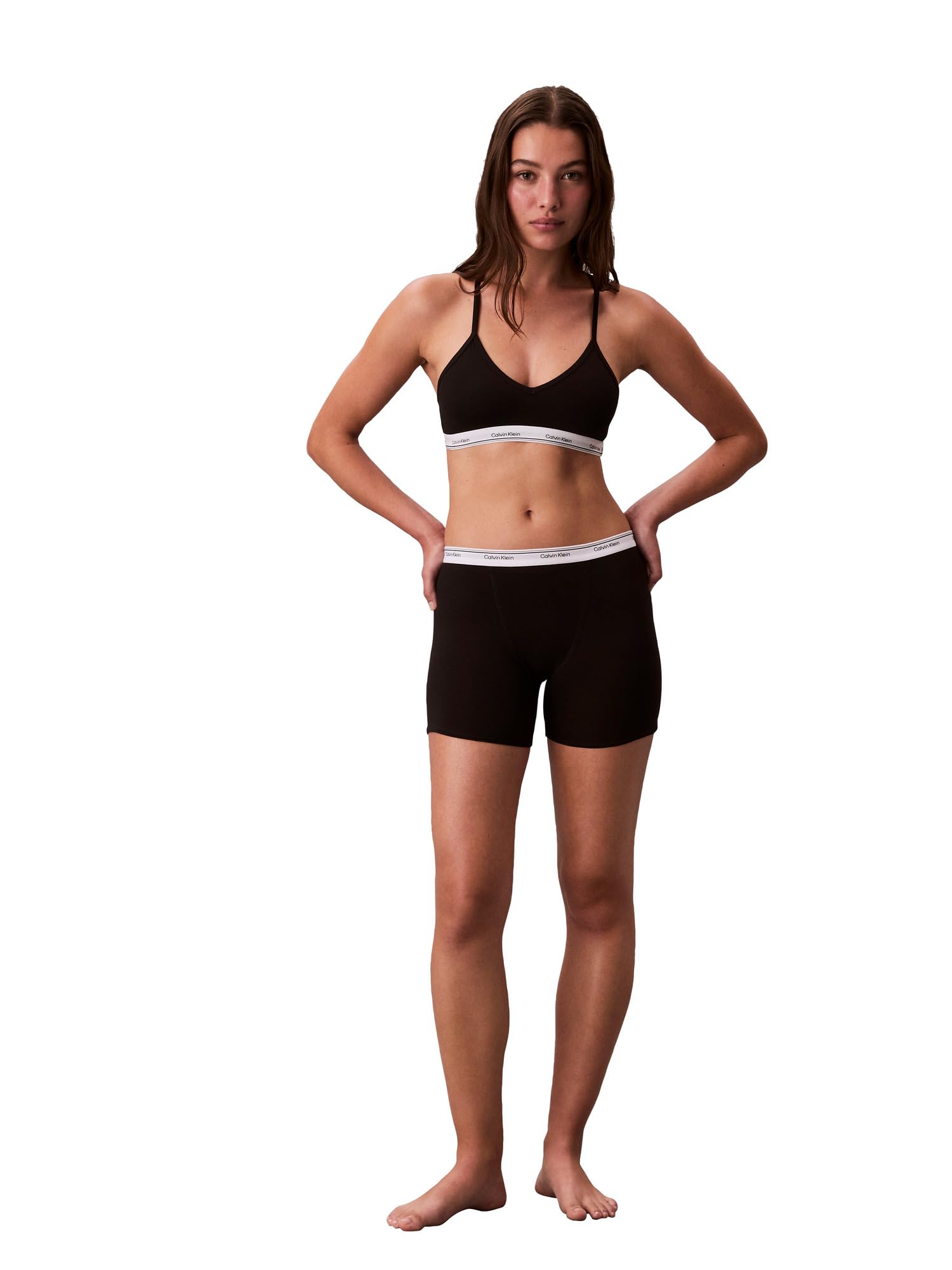 Description Classic yet modern, crafted from an ultra soft cotton modal stretch blend. This boyshort is designed with a repeating Calvin Klein logo waistband with a matching stripe and a comfy fit.